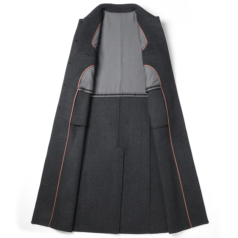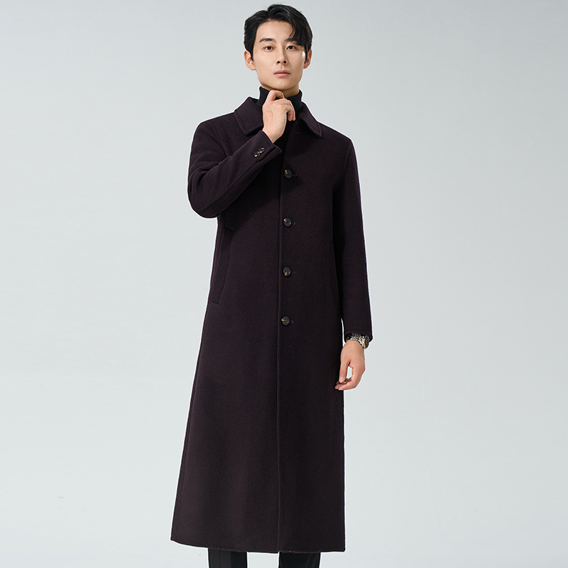 超长款脚踝双面呢男士过膝呢子羊绒外套风衣毛呢大衣翻领商务风衣
