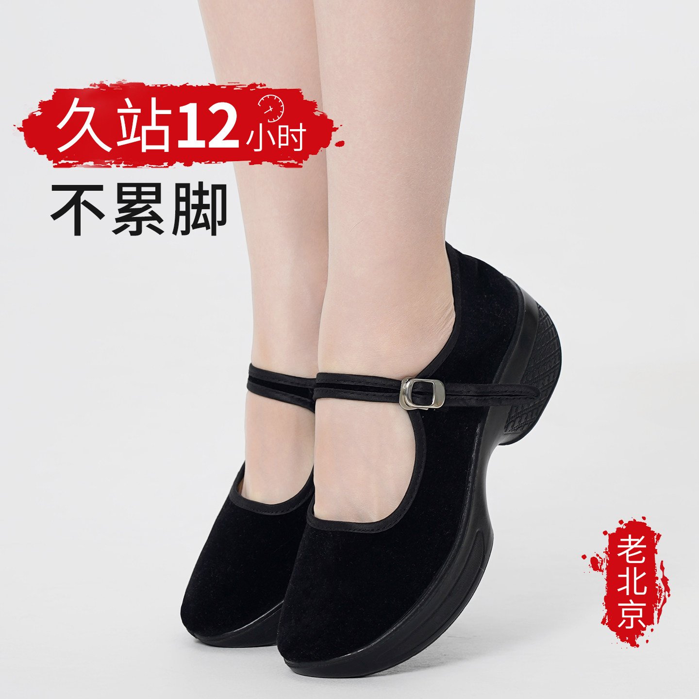 藏族东北胶州秧歌鞋老北京黑布鞋考级专用新款防滑厚底广场舞鞋女