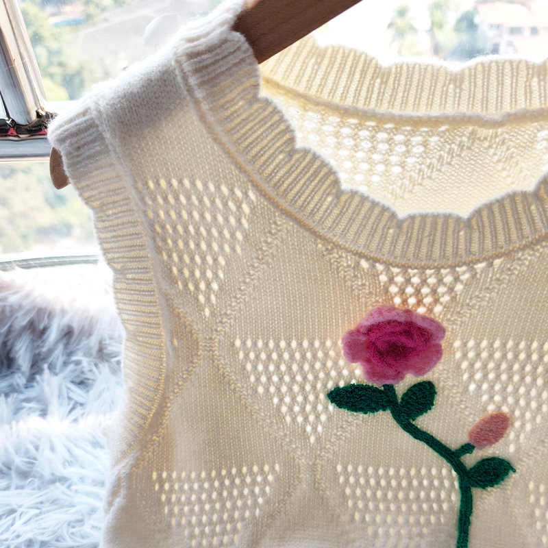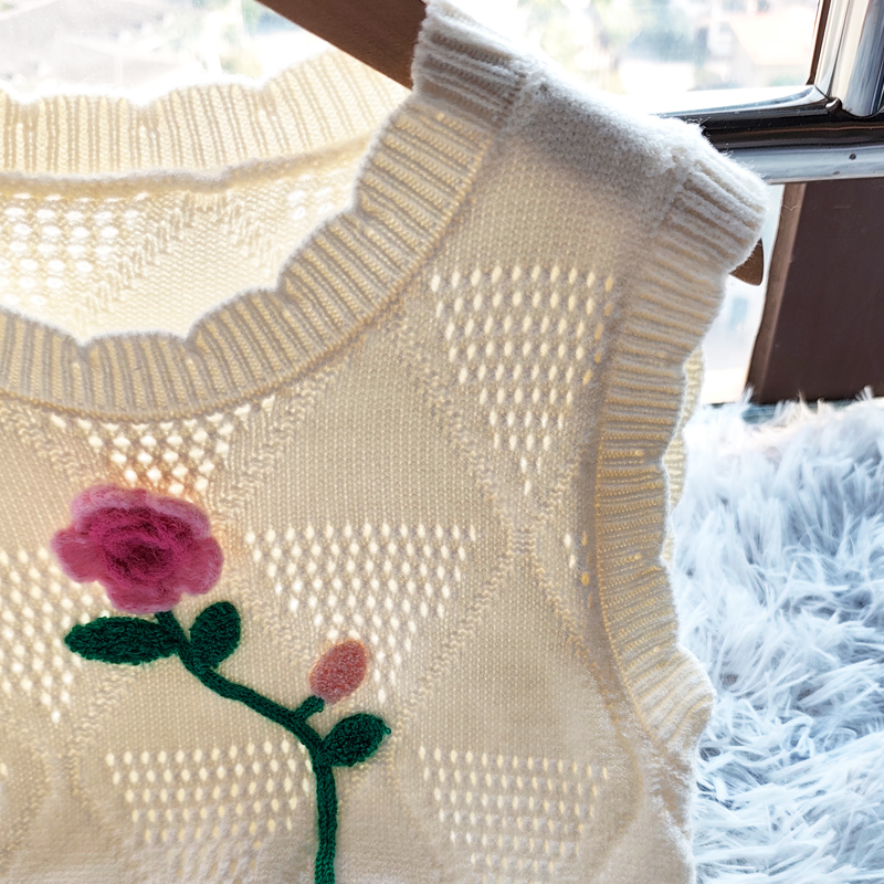2025新款春装女童马甲女宝宝休闲儿童花朵大童针织小背心春秋外穿