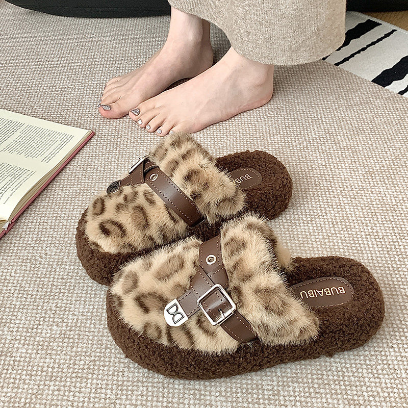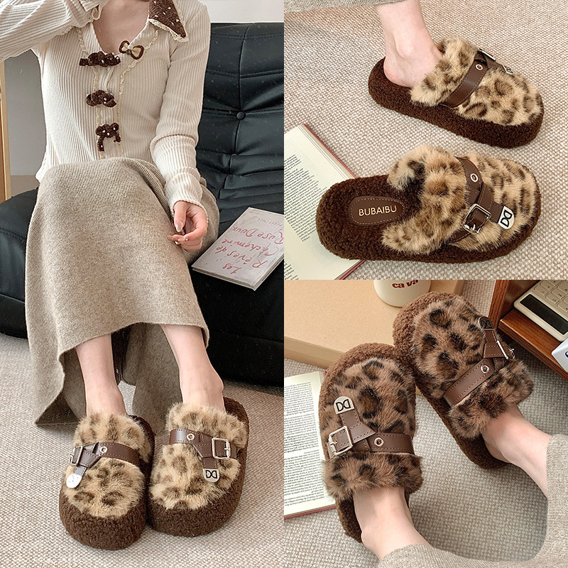 2026年新款时尚8829半包豹纹百搭外穿软底家居保暖毛毛鞋女拖鞋