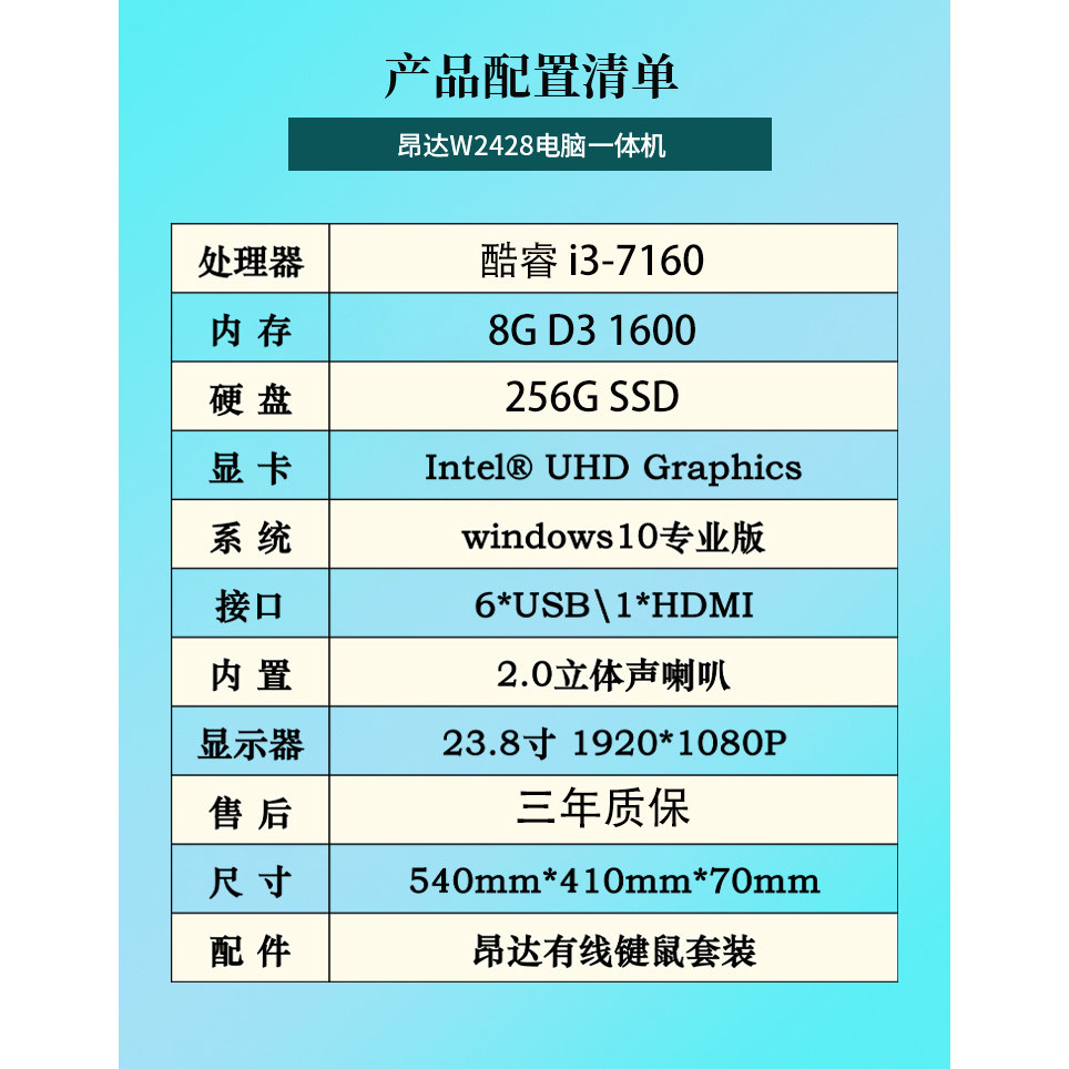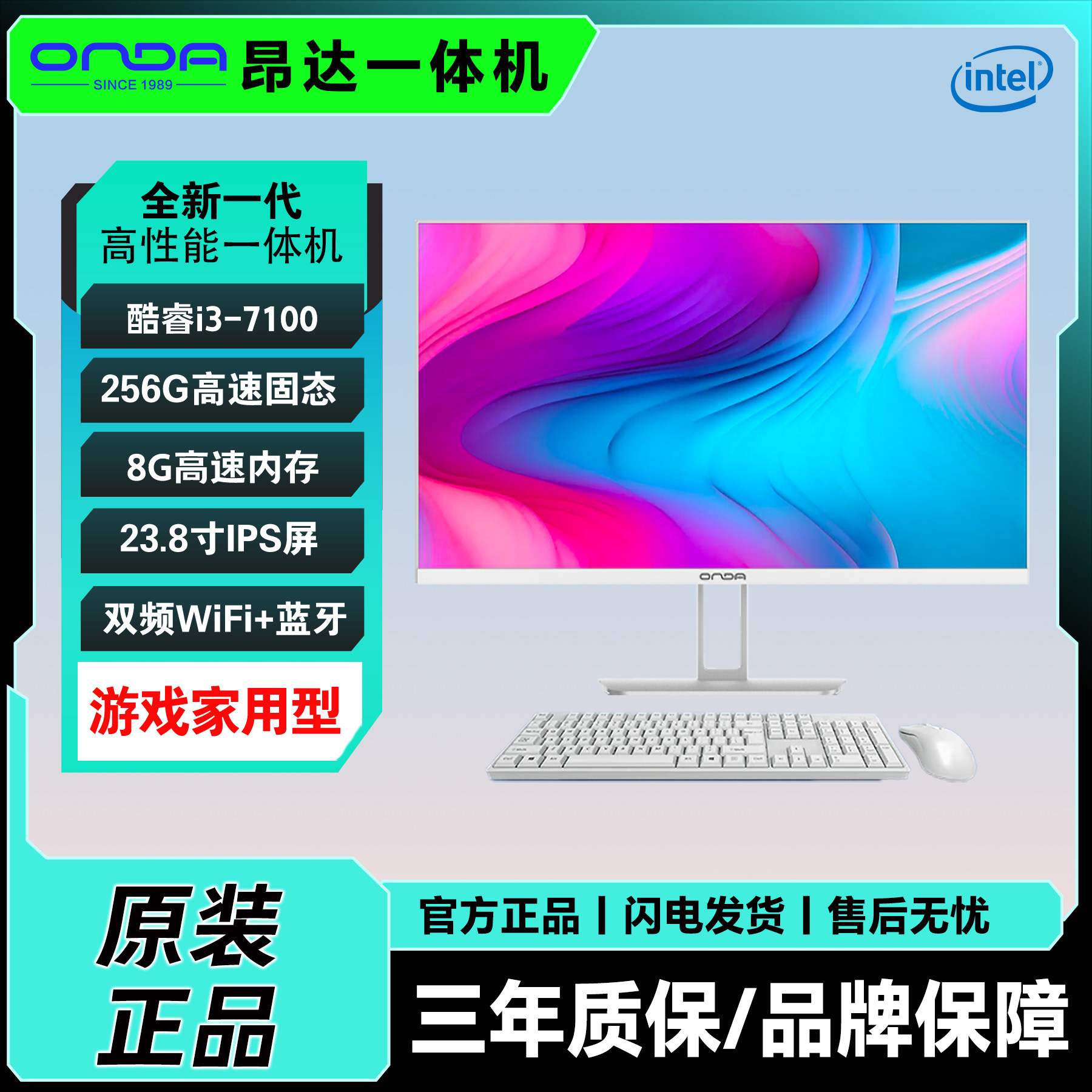 昂达ONDA24寸电脑一体机 i3-7100 8G 256G WiFi商务办公家用整机