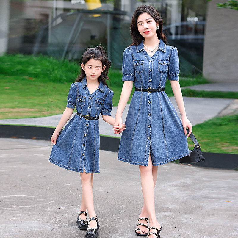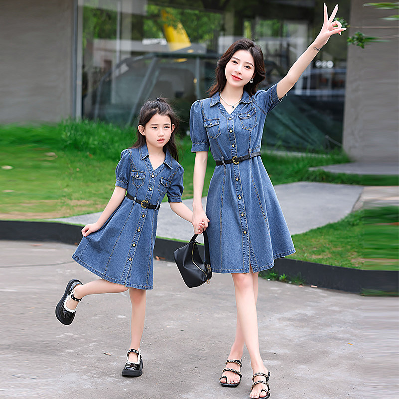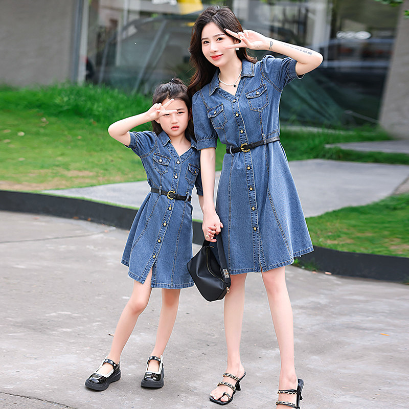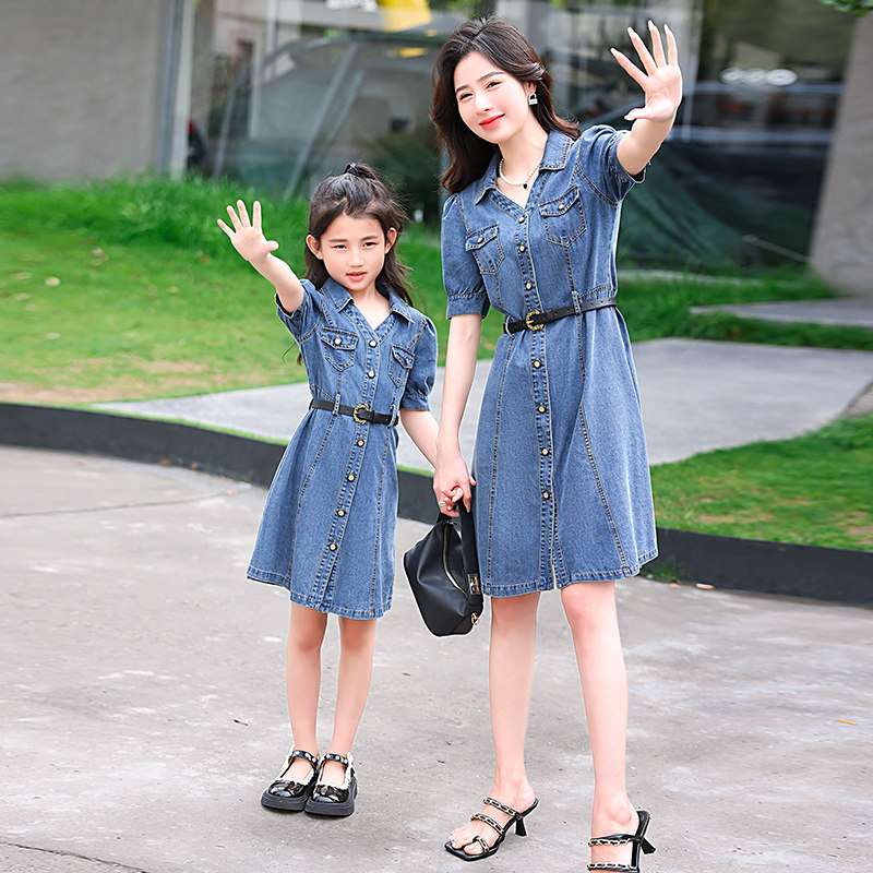 高端母女装2023夏装新款炸街洋气时尚裙子牛仔连衣裙亲子装夏季潮