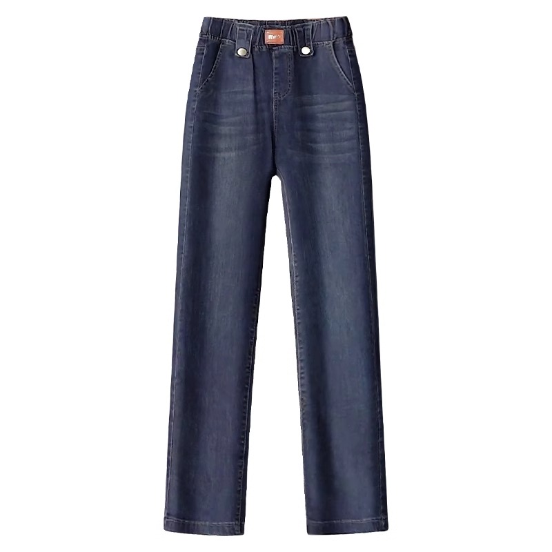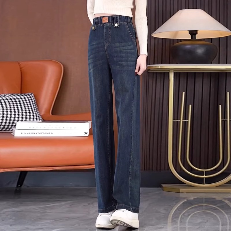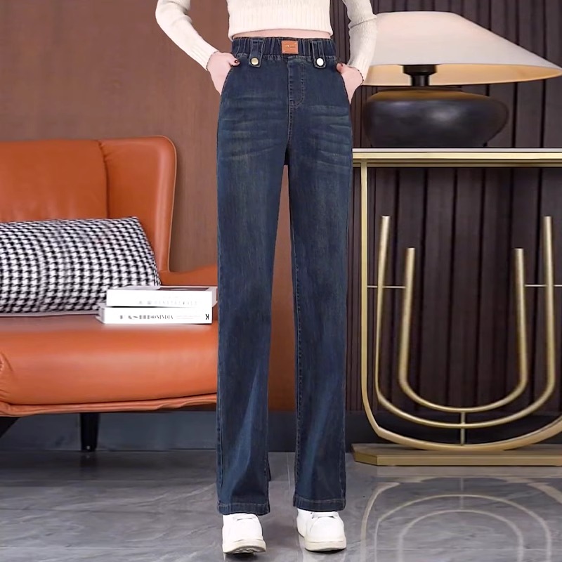 松紧腰大码加绒直筒牛仔裤女春秋季2025新款高腰宽松窄版阔腿裤子