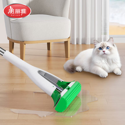 美丽雅宠物抑菌胶棉拖把家用免手洗对折挤水懒人拖地神器海绵拖把