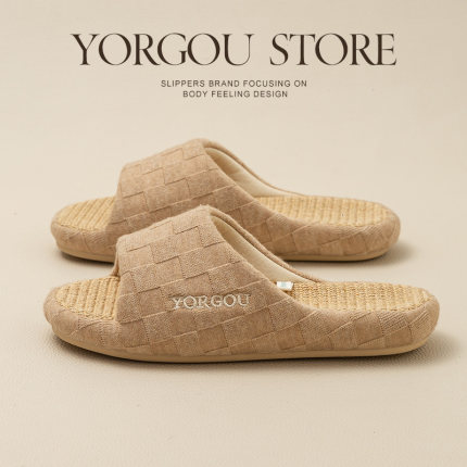 远港亚麻拖鞋女室内居家居四季防滑防臭布艺吸汗棉麻木地板男春秋