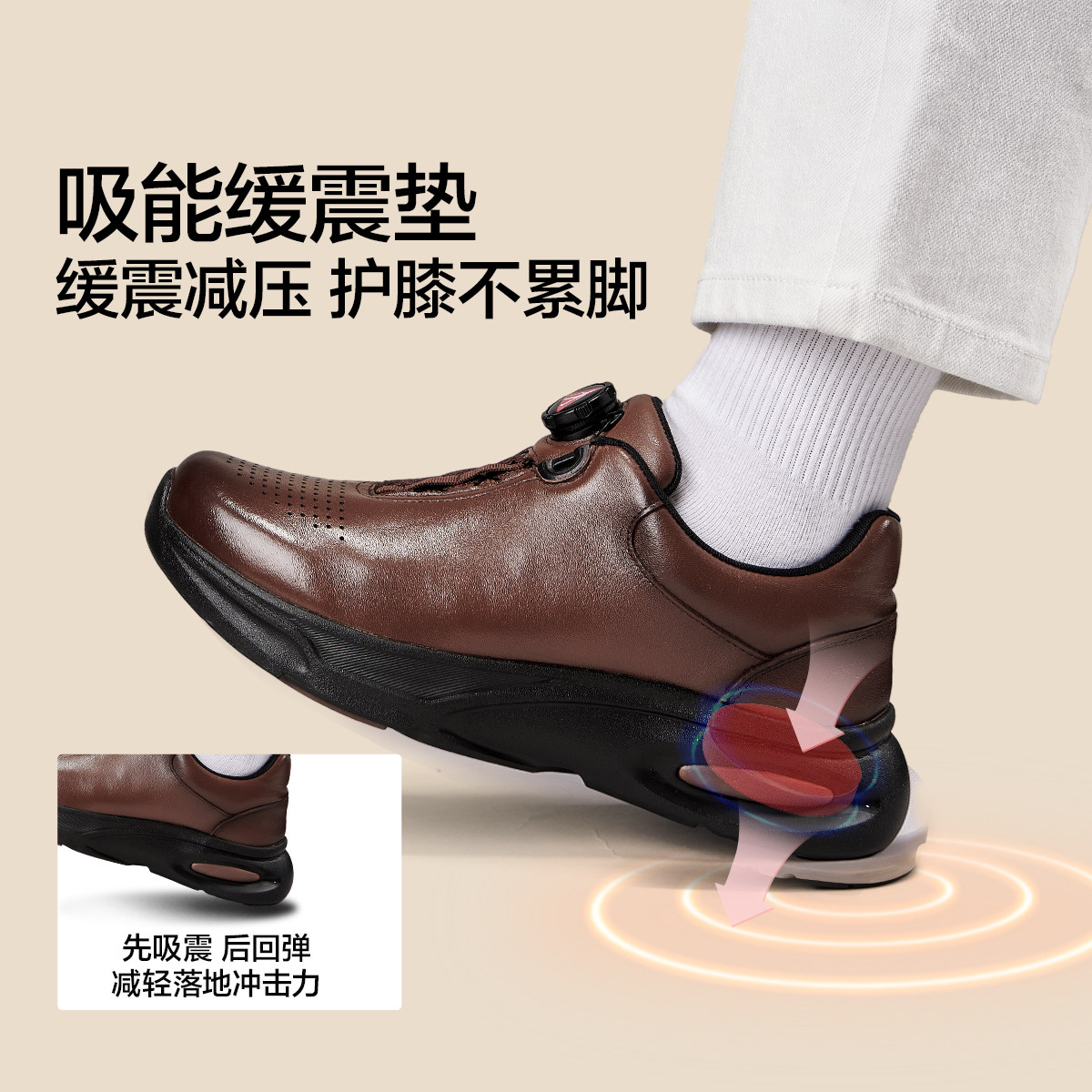 足力健老人鞋旗舰店春季中老年爸爸鞋耐磨缓震皮鞋软底真皮商务鞋