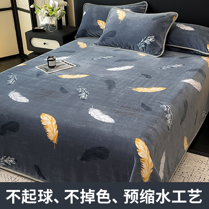 冬季法兰绒床单单件冬天珊瑚牛奶绒毛毯毯子冬天加绒加厚毛绒被单