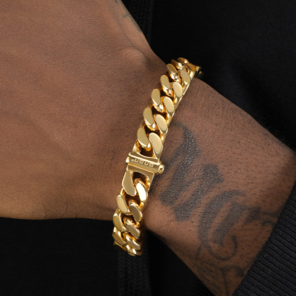 GRGR 18K黄金色钛钢古巴手链男欧美hiphop街头粗款cuban link手环