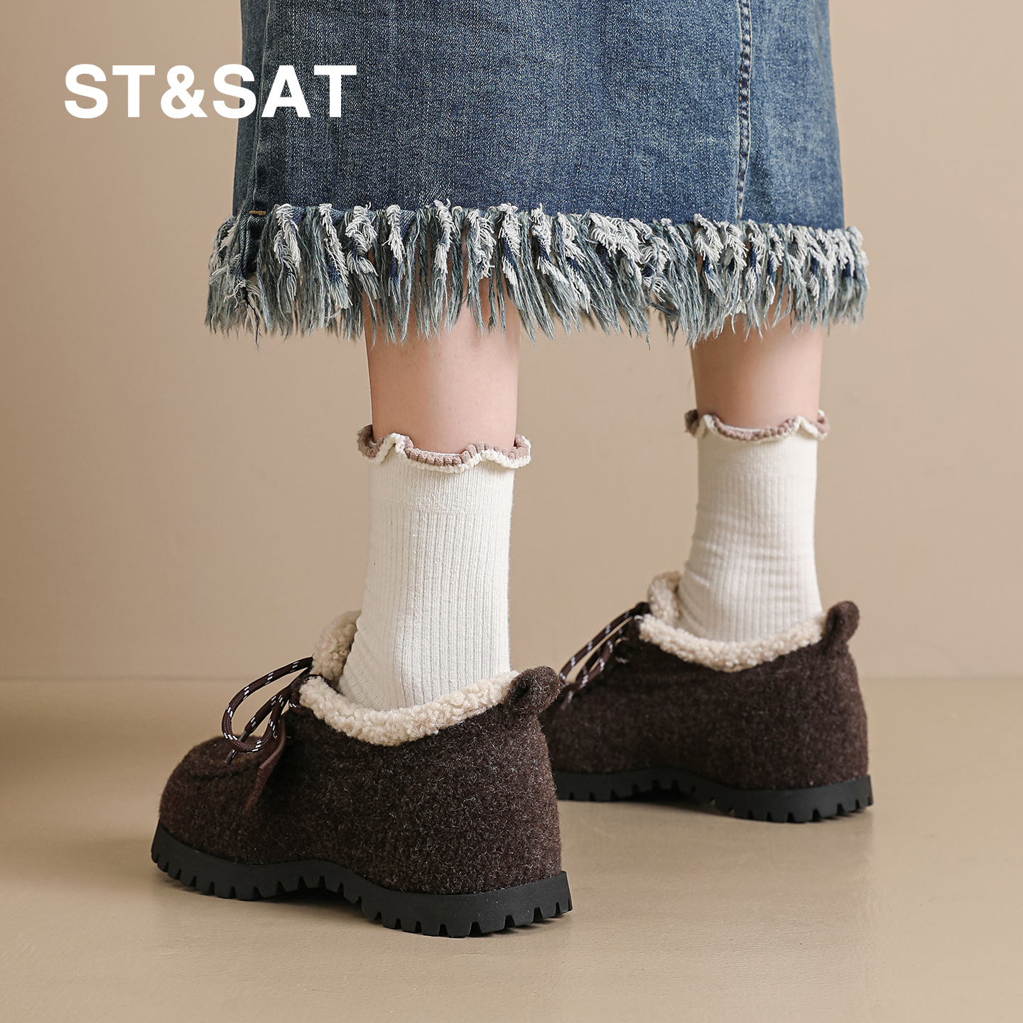 星期六厚底内增高乐福鞋女2025冬季新款保暖慵懒棉鞋防滑休闲女鞋