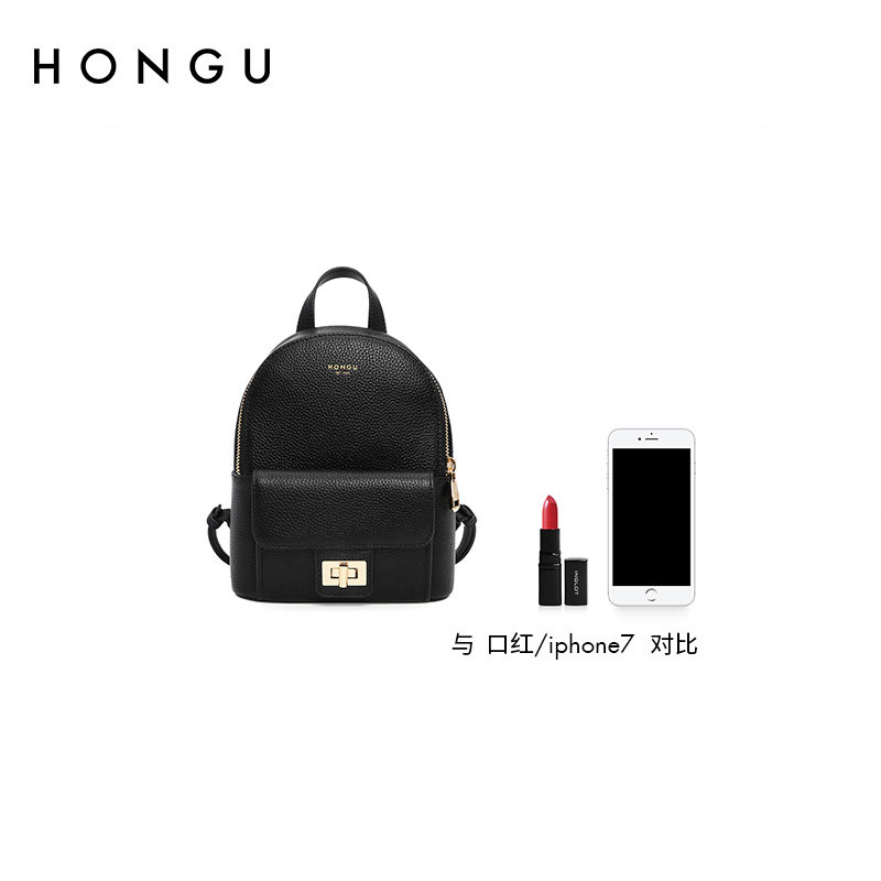 红谷时尚轻便真皮迷你双肩背包