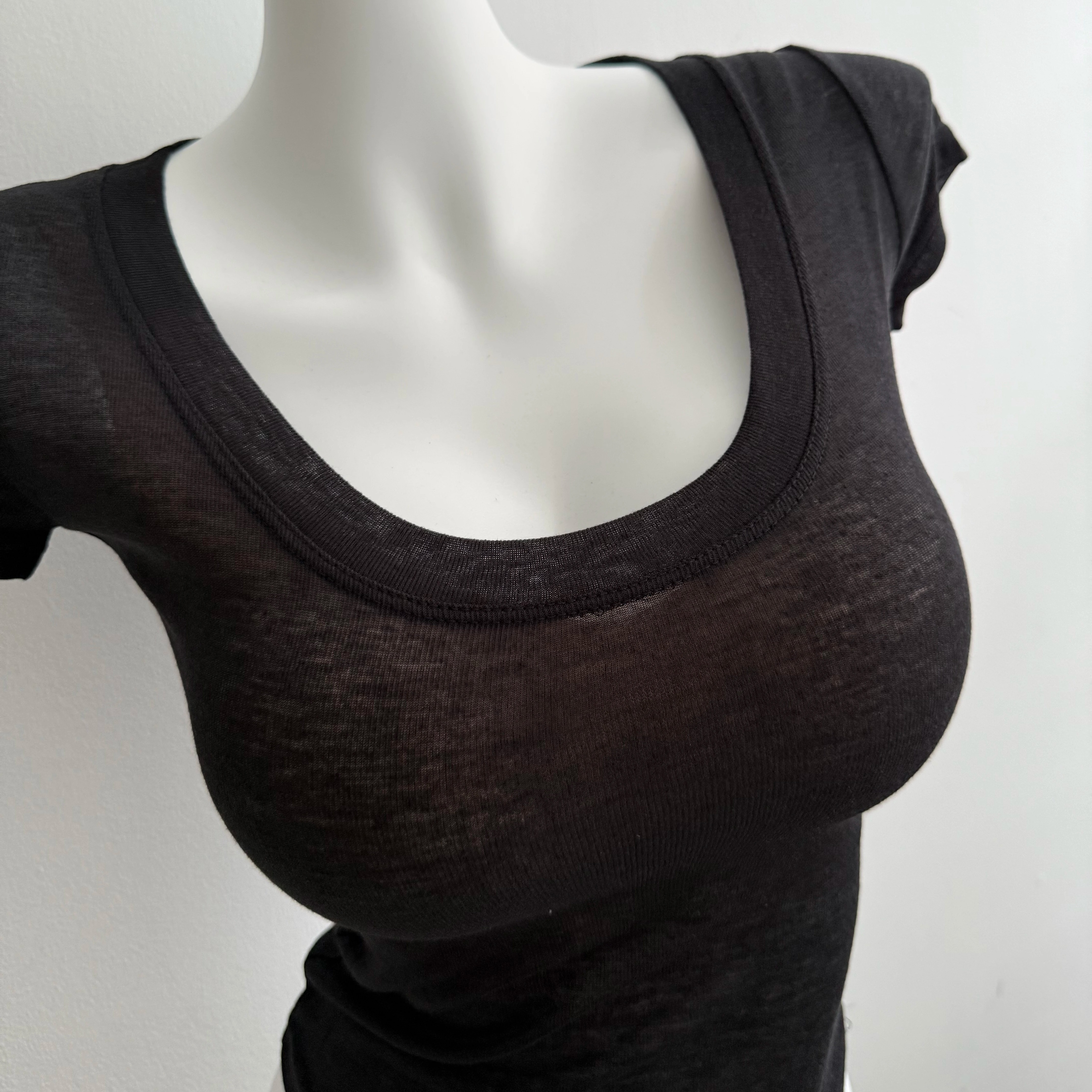 性感高透大U领紧身T恤正肩短袖女