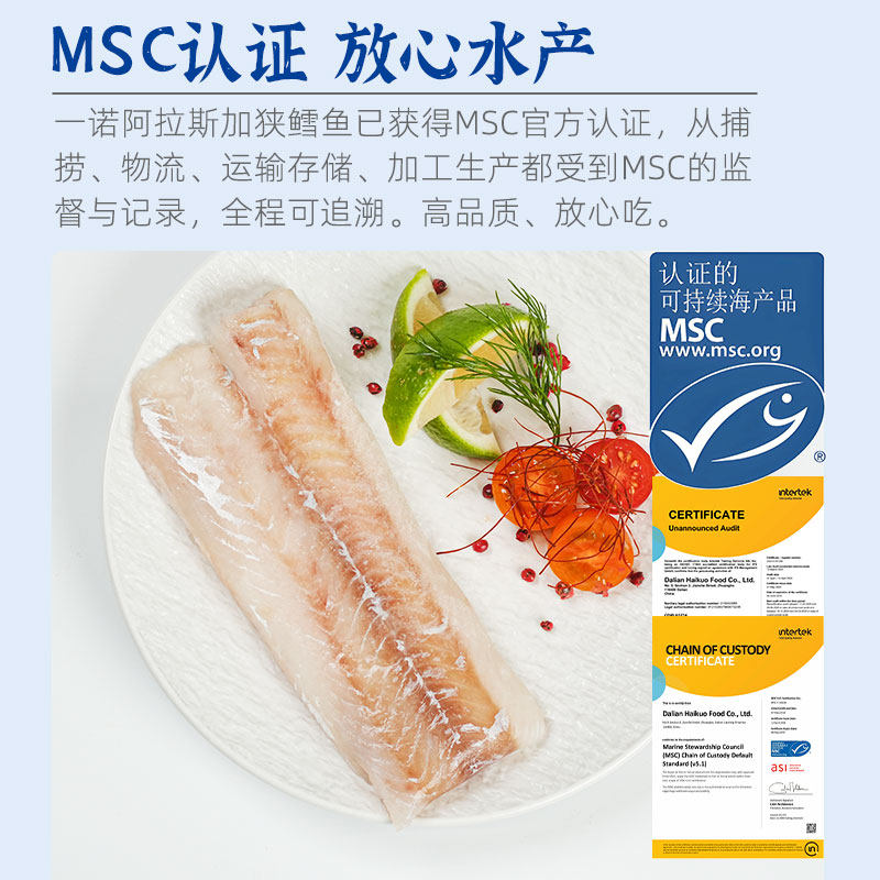 一诺阿拉斯加狭鳕鱼柳新鲜冷冻俄罗斯深海鳕鱼排宝宝辅食儿童生鲜