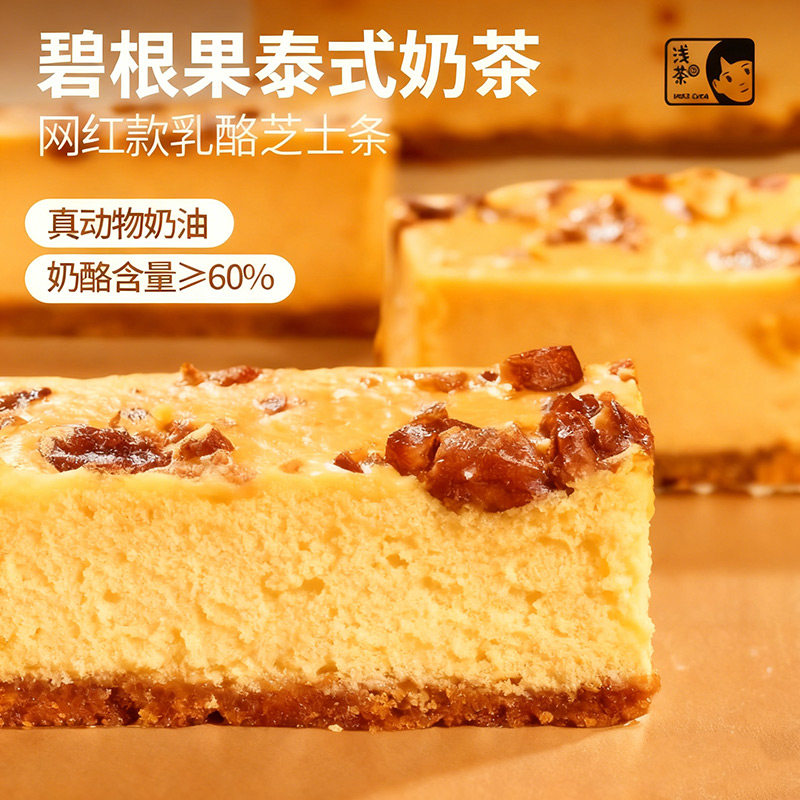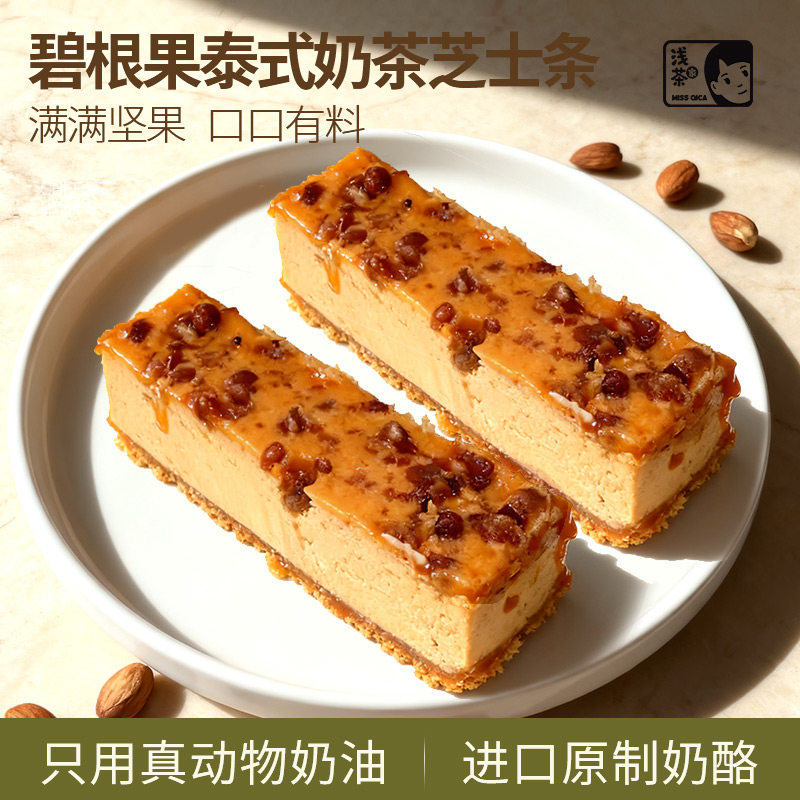 浅茶家手工碧根果泰式奶茶乳酪芝士条蛋糕动物奶油零食好吃不甜腻