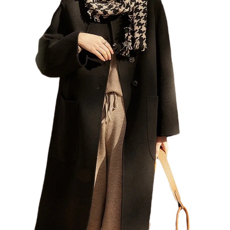 风衣外套女高级感大码女装加厚大衣中长款秋冬新款宽松双面绒毛呢