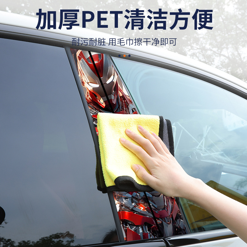 汽车中柱装饰贴车窗B柱保护膜同款个性创意改装彩绘亮条