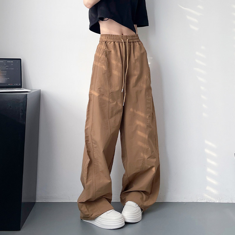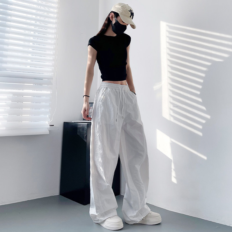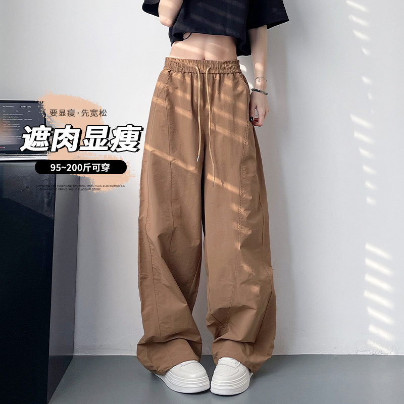 大码宽松休闲阔腿裤女夏季胖mm显瘦遮肉直筒运动裤高腰束脚工装裤