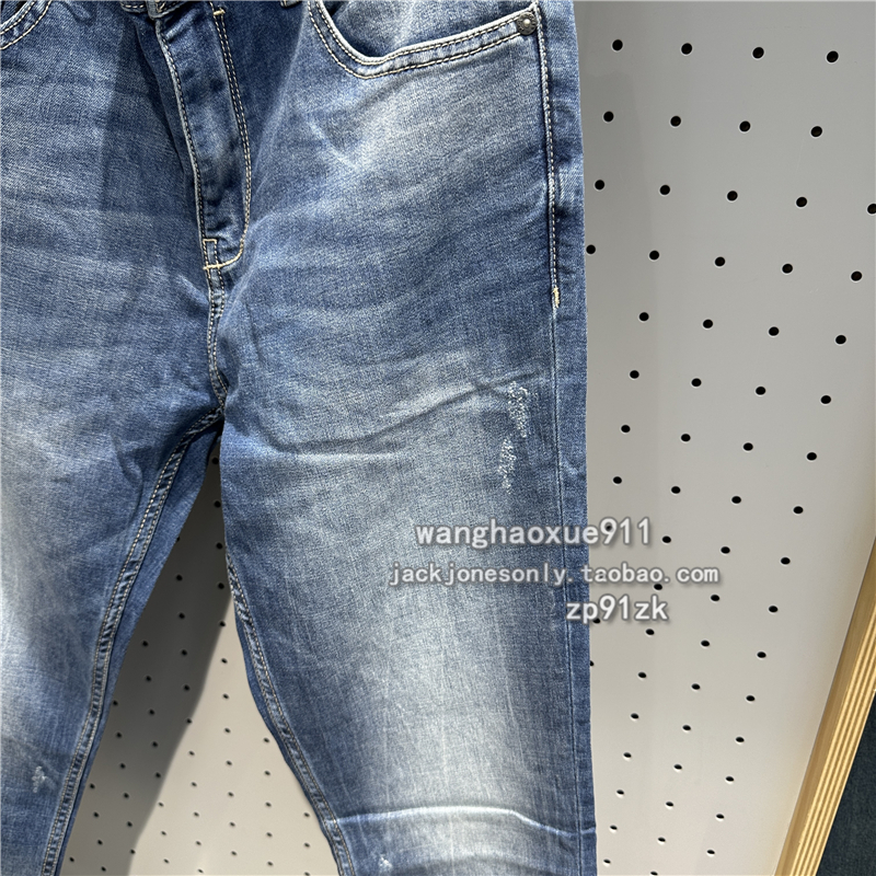 杰克琼斯 夏季男士潮流901GREG紧身小脚磨白水洗猫须休闲牛仔裤