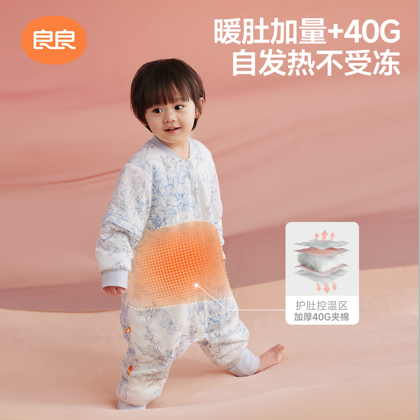 良良儿童睡袋恒温婴儿宝宝防踢被秋冬分腿乳霜棉睡袋