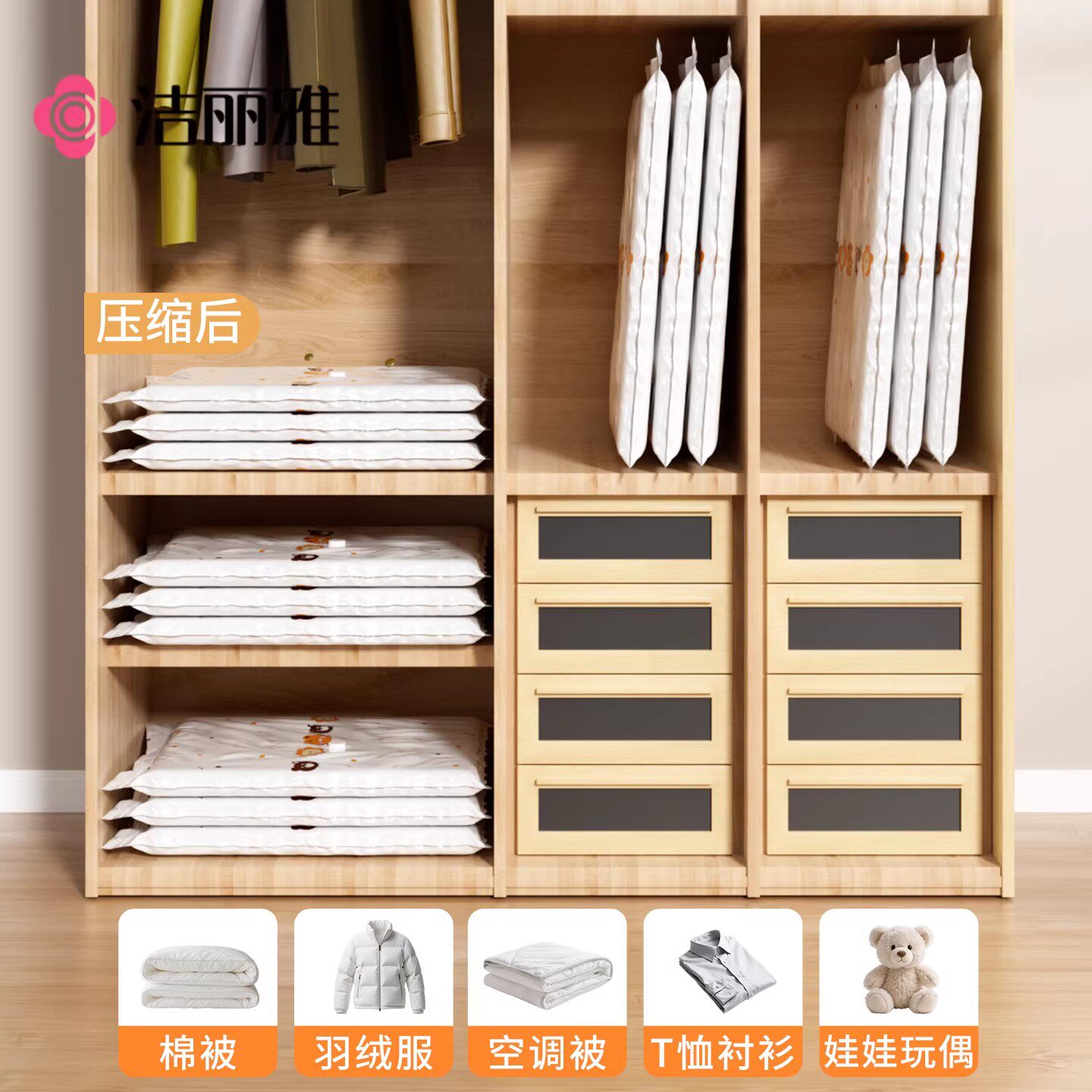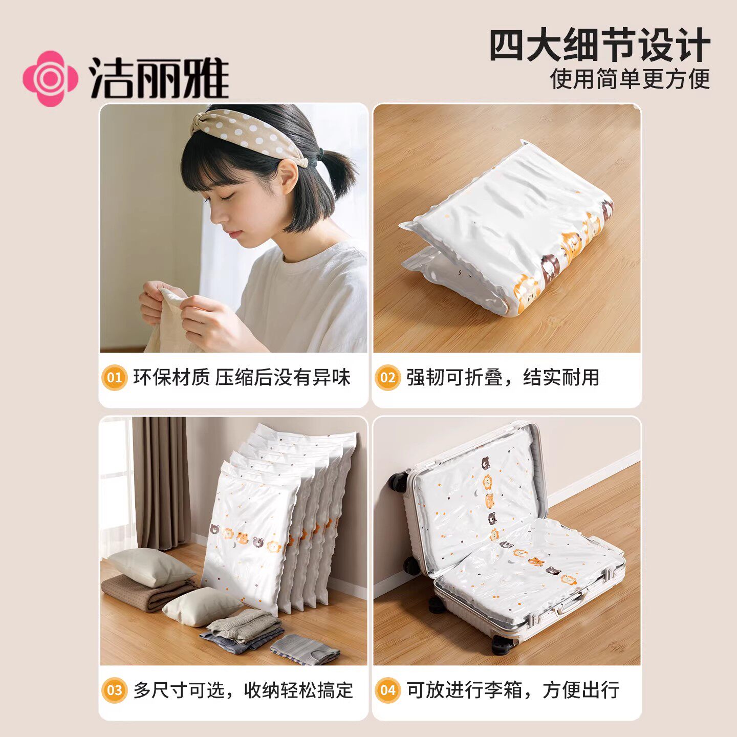 洁丽雅真空收纳袋压缩袋被子衣服专用搬家打包神器衣物抽气旅行袋
