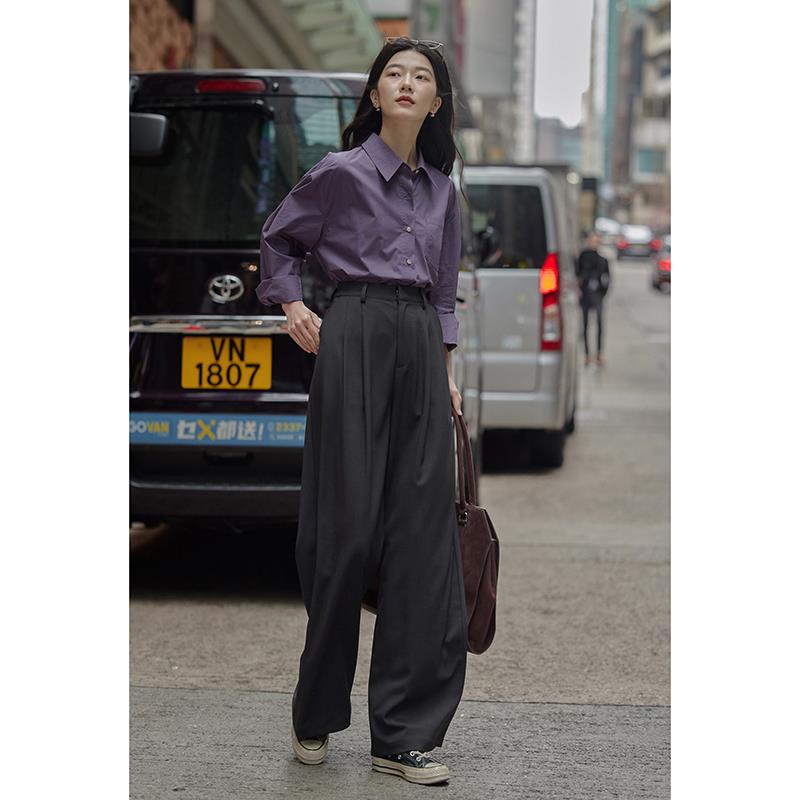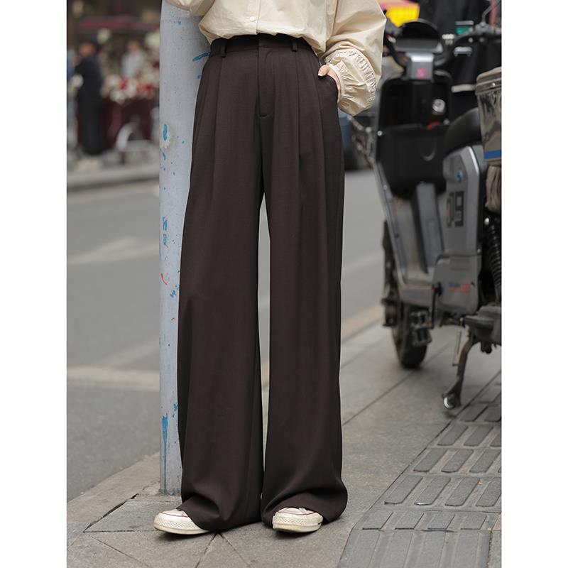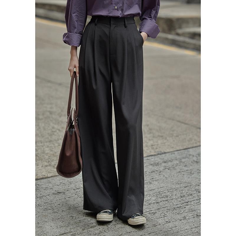 觅定灰色西装裤女夏季阔腿裤新款直筒裤垂感高级感休闲长裤子春秋