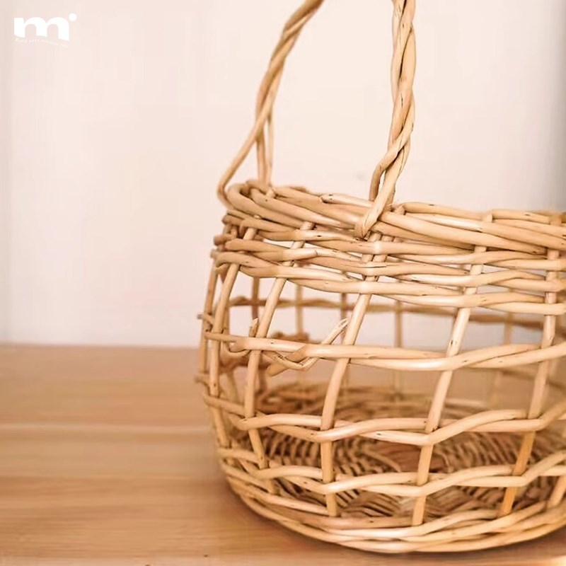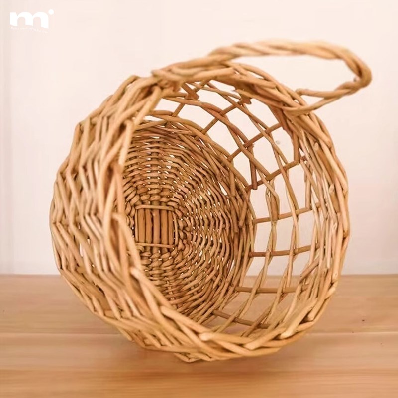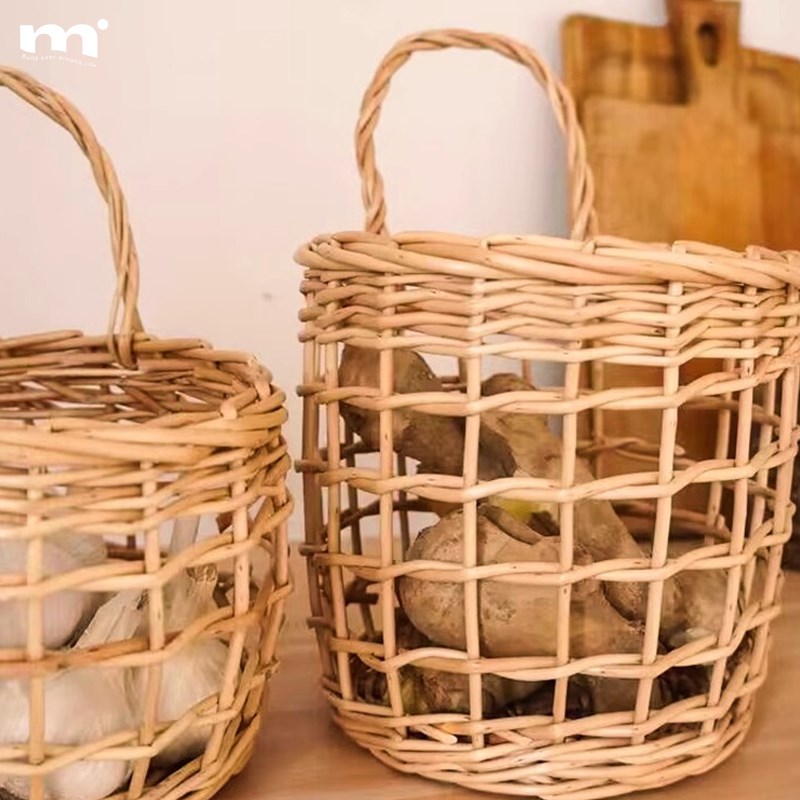 ins藤编手工艺编织小挂篮姜蒜收纳篮单耳壁挂收纳W筐小篮子吊篮筐