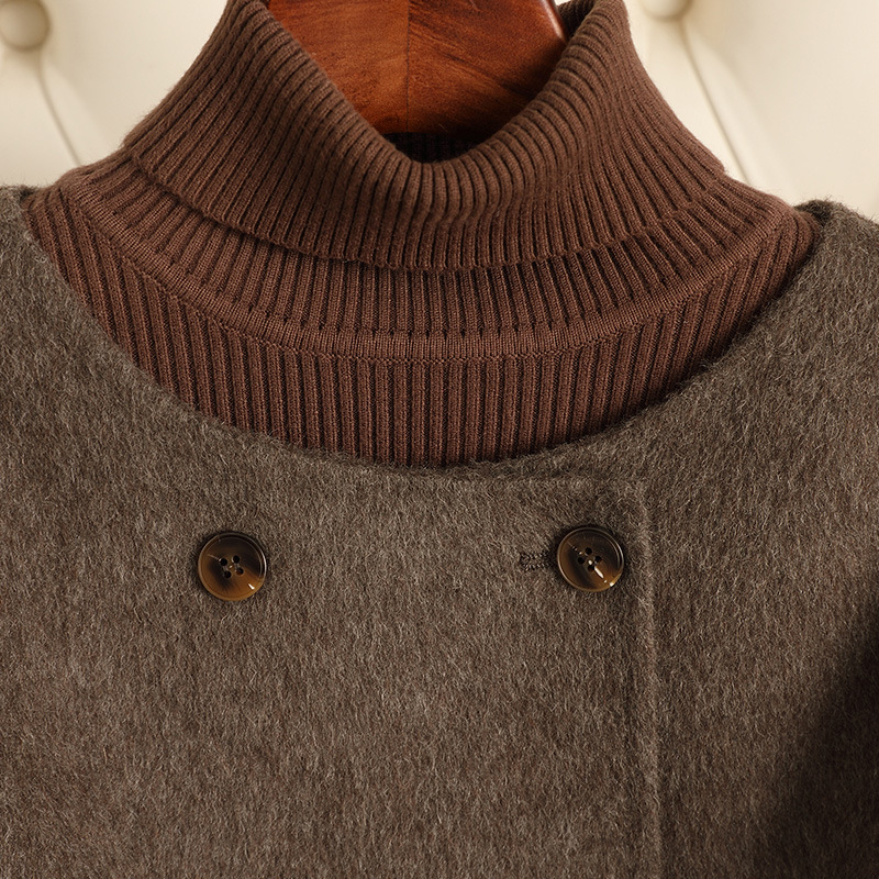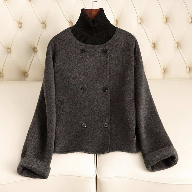 双面羊毛大衣女短款 秋冬新款圆领气质小香风毛呢外套女小个子