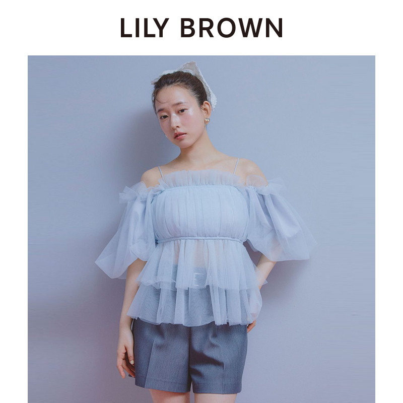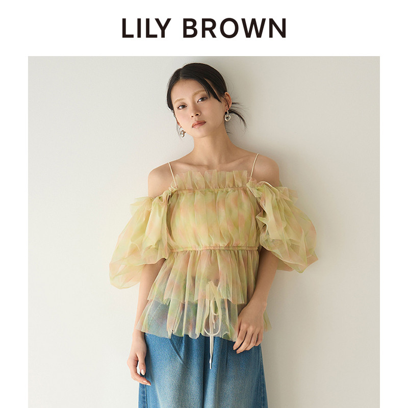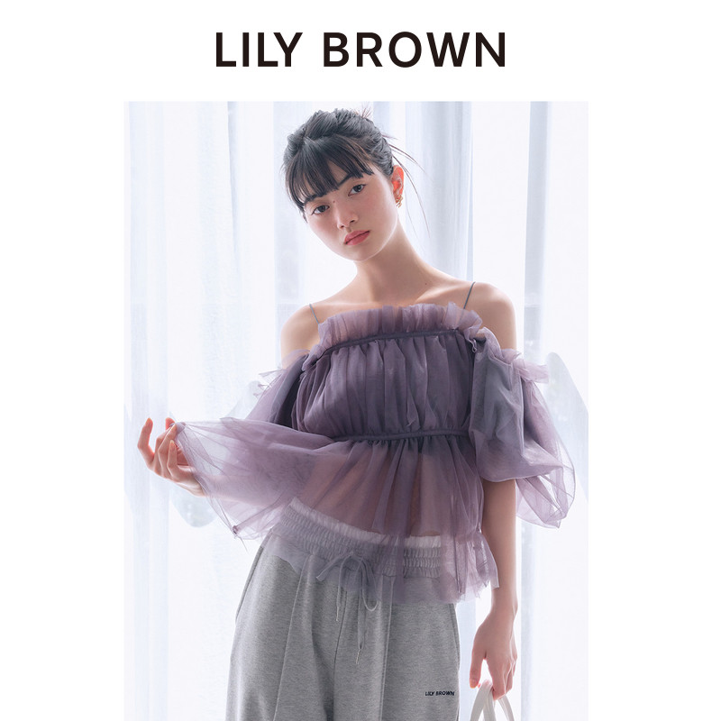 LILY BROWN春夏款荷叶边吊带露肩薄纱衬衫上衣LWFT252081