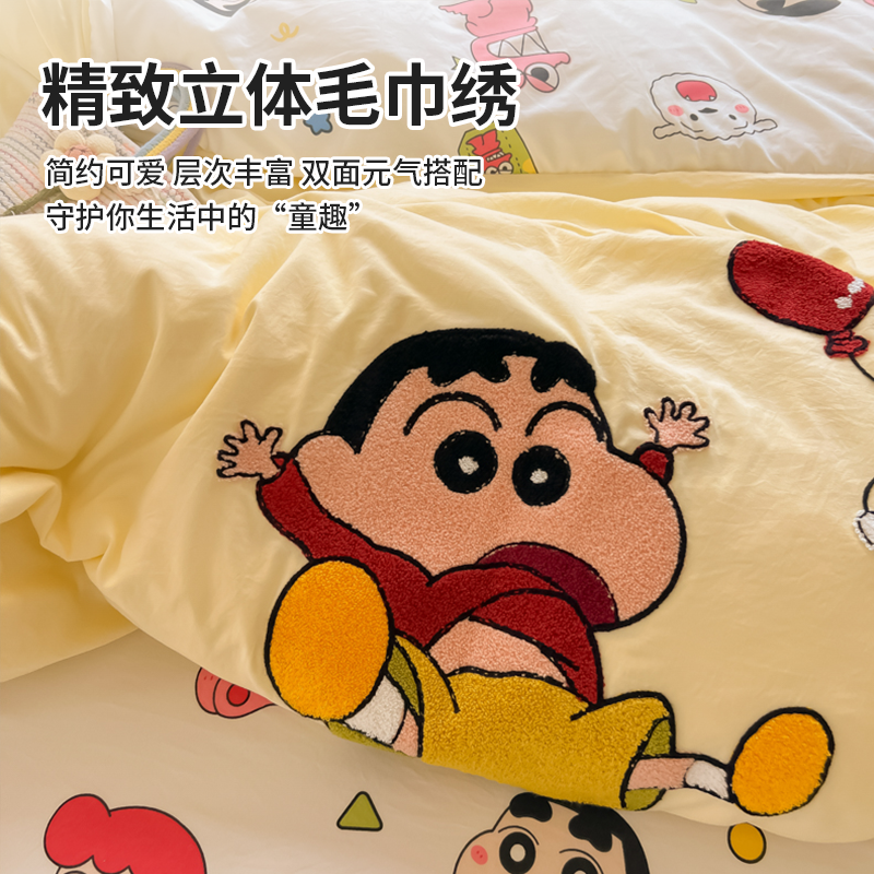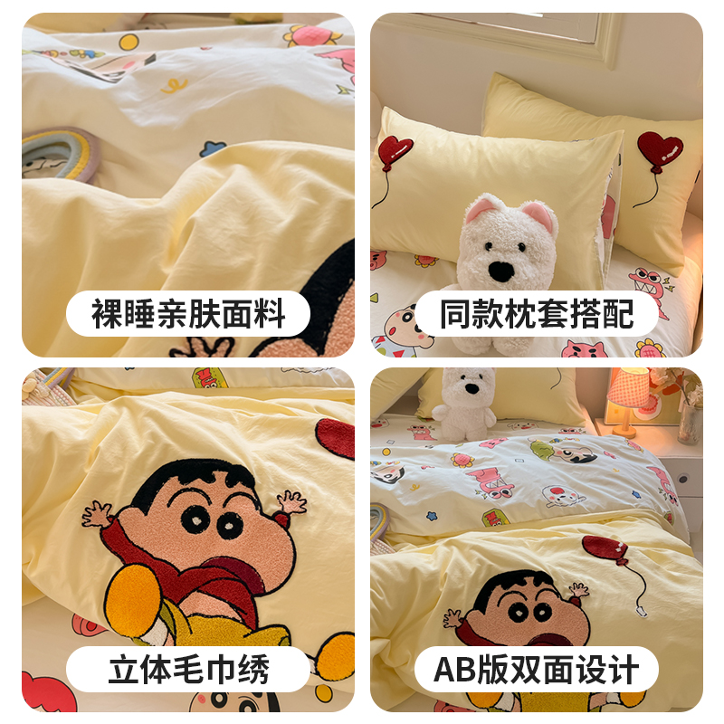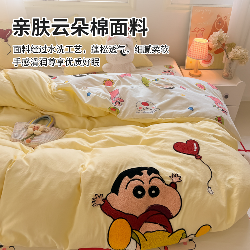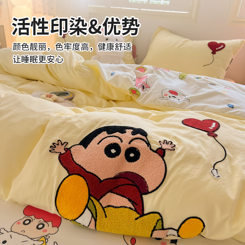 卡通蜡笔小新水洗棉床上四件套可爱被套非全棉纯棉床单宿舍三件套