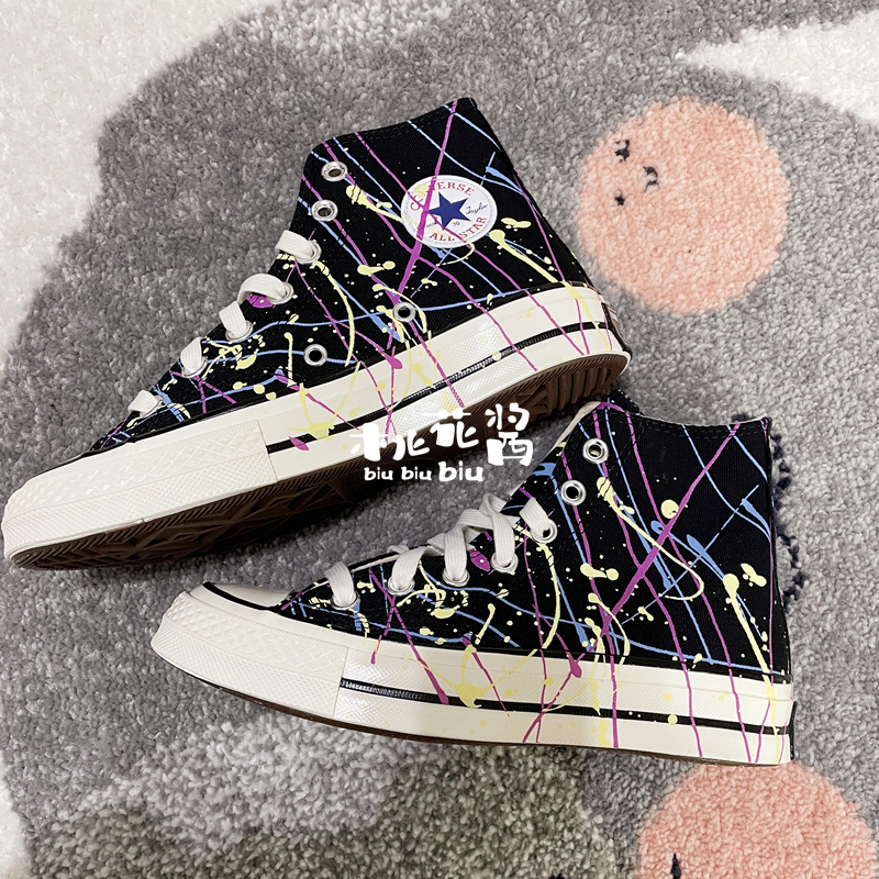 Converse匡威1970s高帮米白泼墨印花三星标帆布鞋170801C 170802C