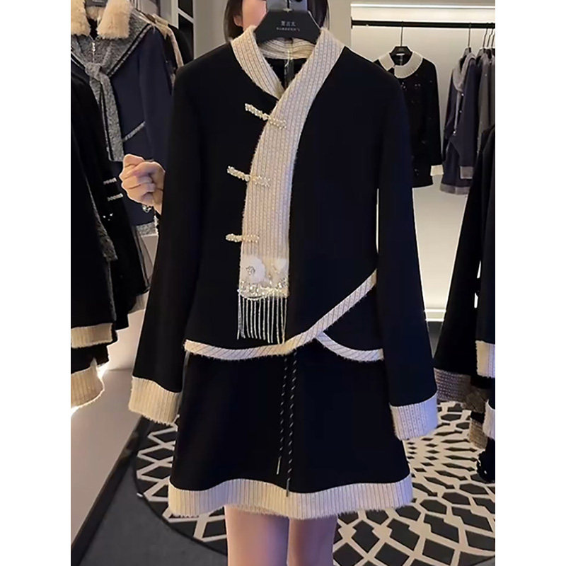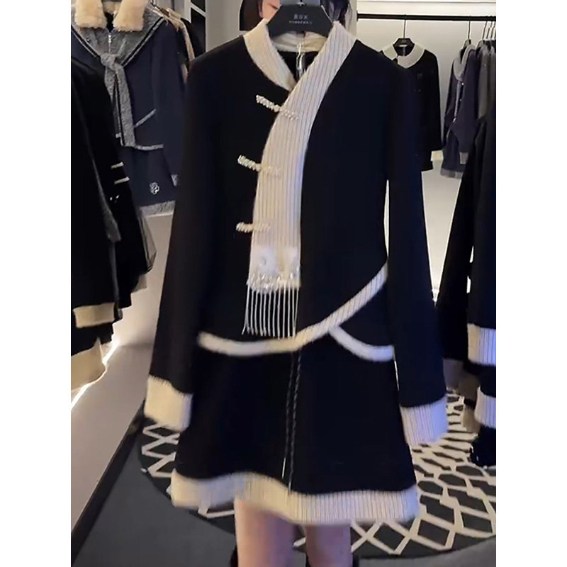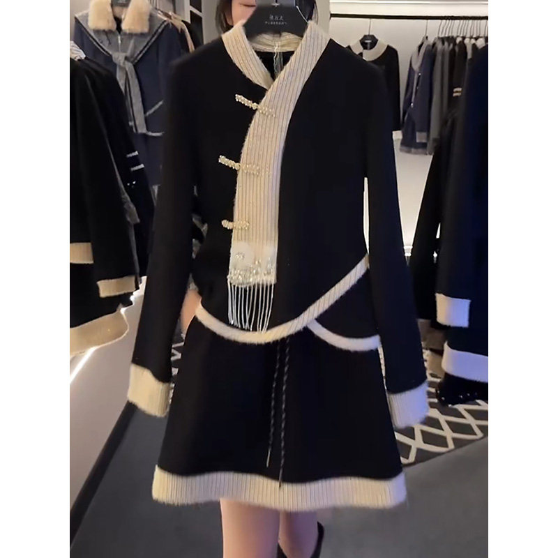 韩版气质名媛时尚套装裙2025冬季新款超仙减龄加厚加绒卫衣半身裙