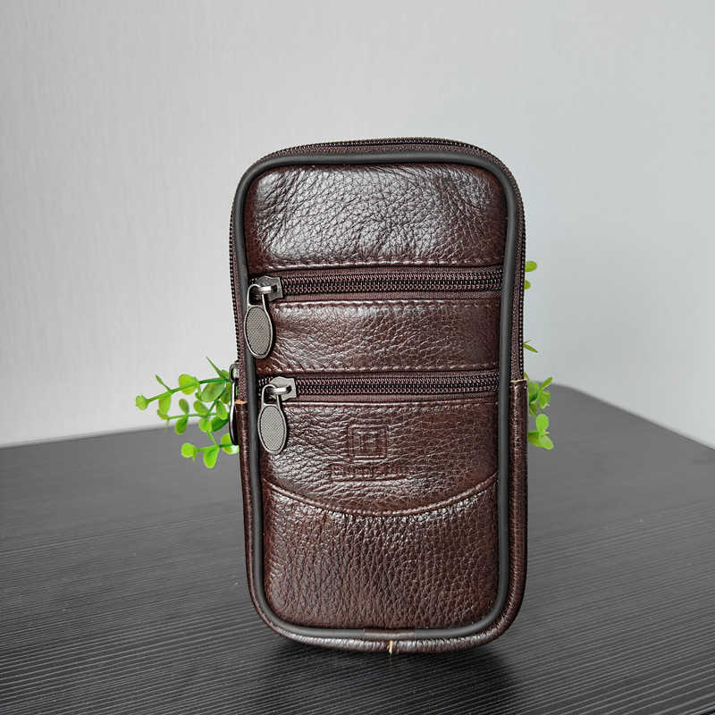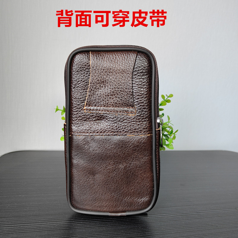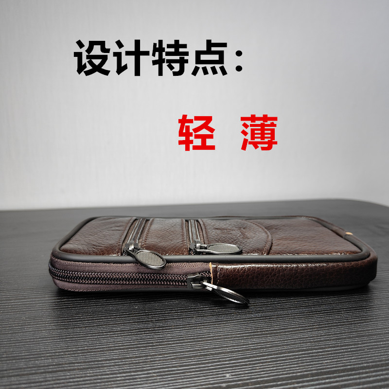单层竖款真皮 手机包腰包穿皮带挂腰手机袋轻薄款牛皮智能机通用