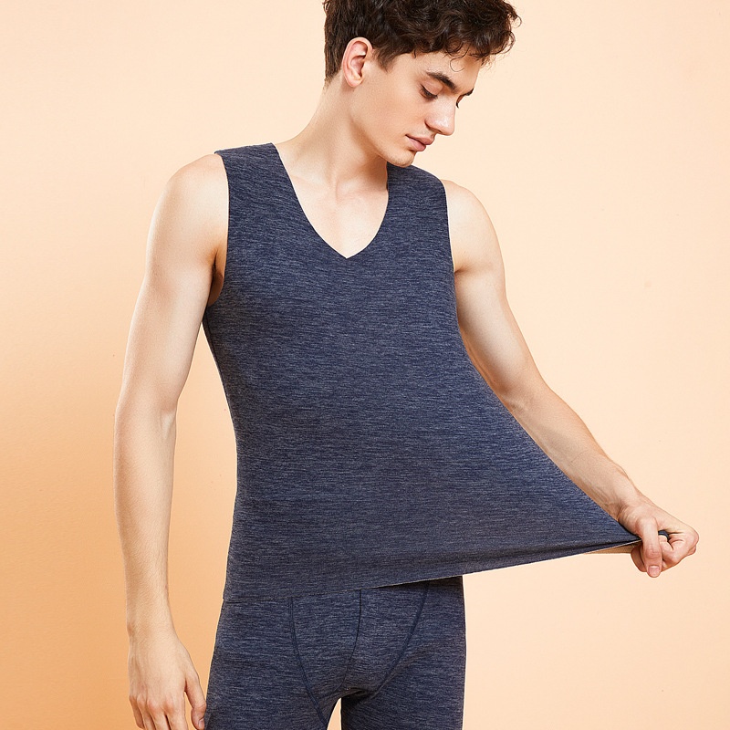 秋冬羊绒蚕丝保暖背心新款女修身圆领打底衫上衣男士无袖马甲