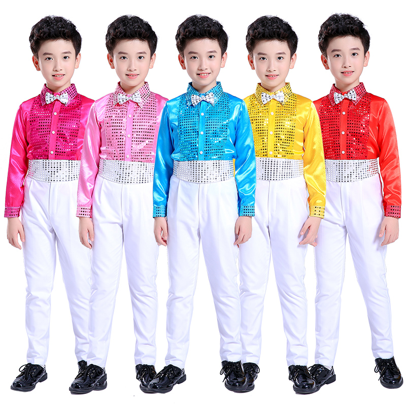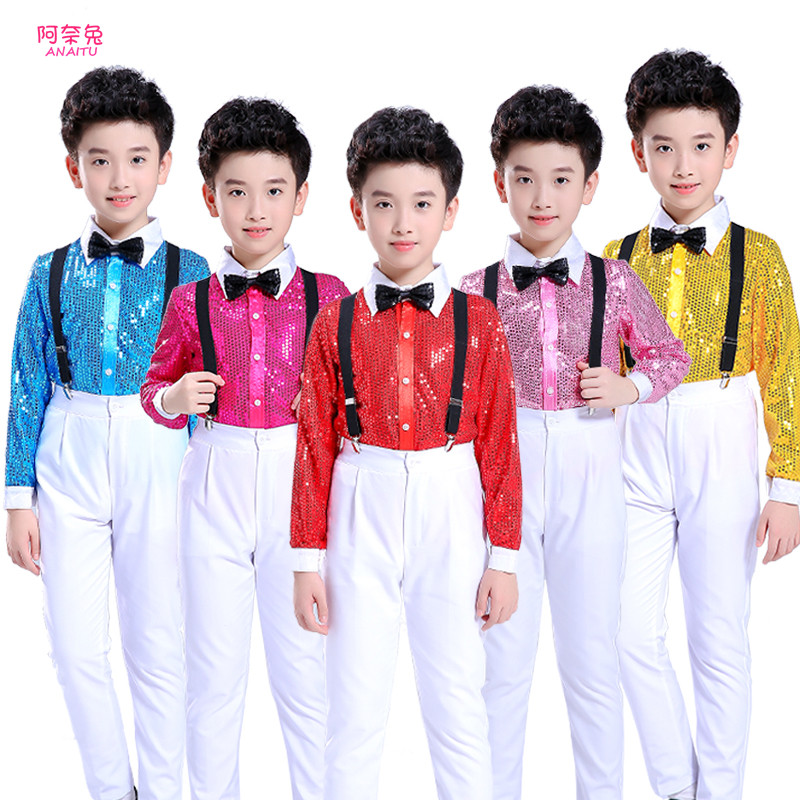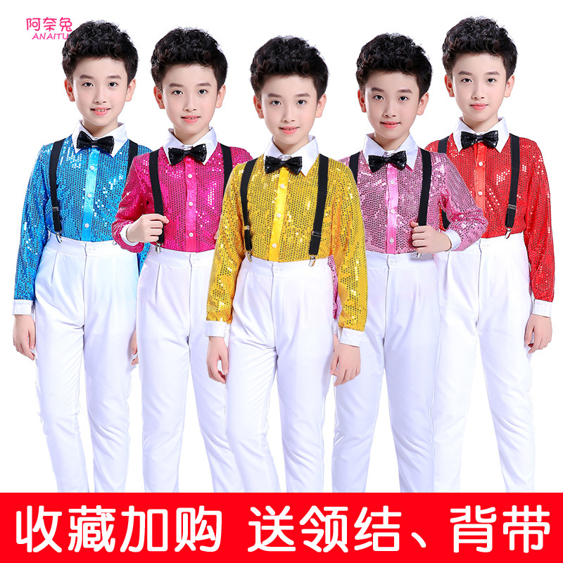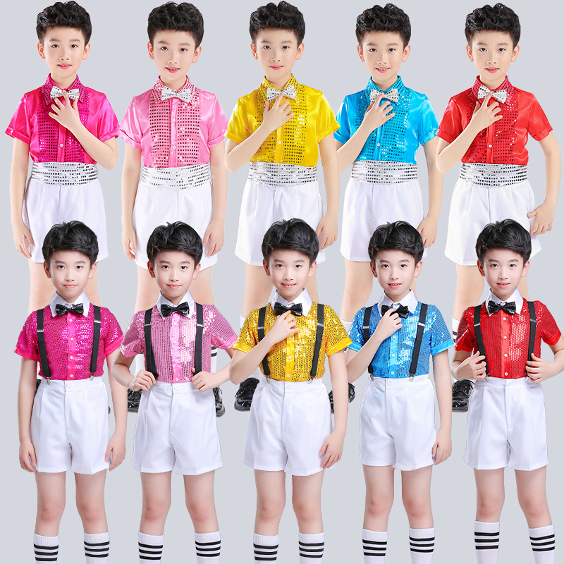 元旦儿童演出服小学生男童亮片背带裤男孩幼儿园舞蹈男生表演服装