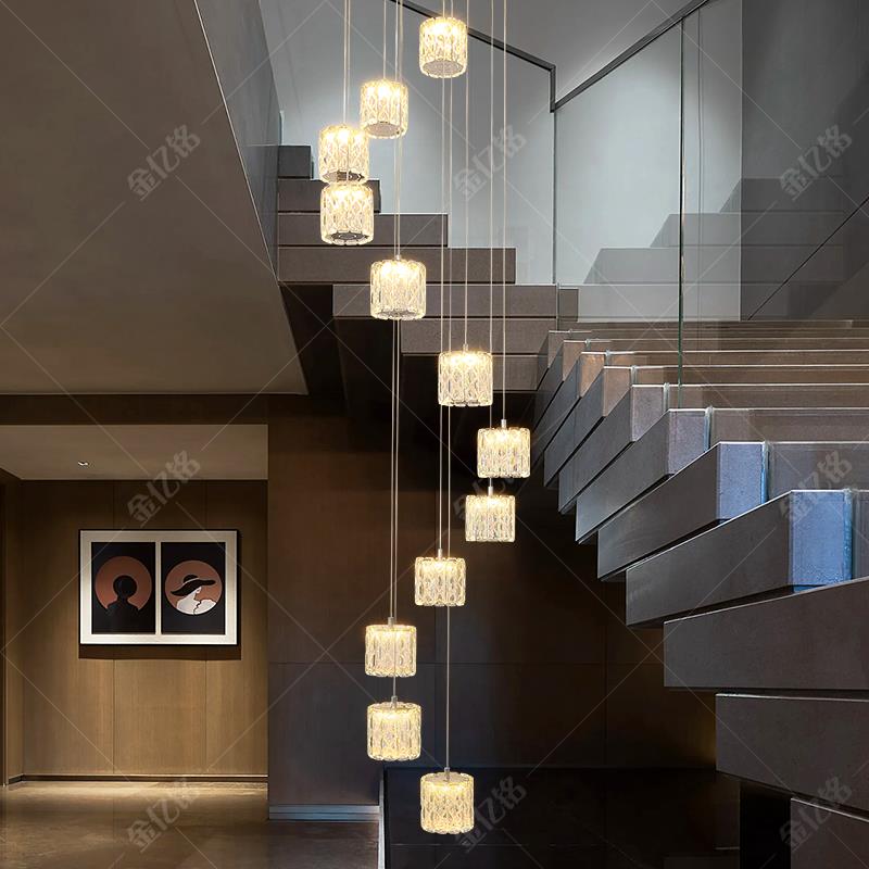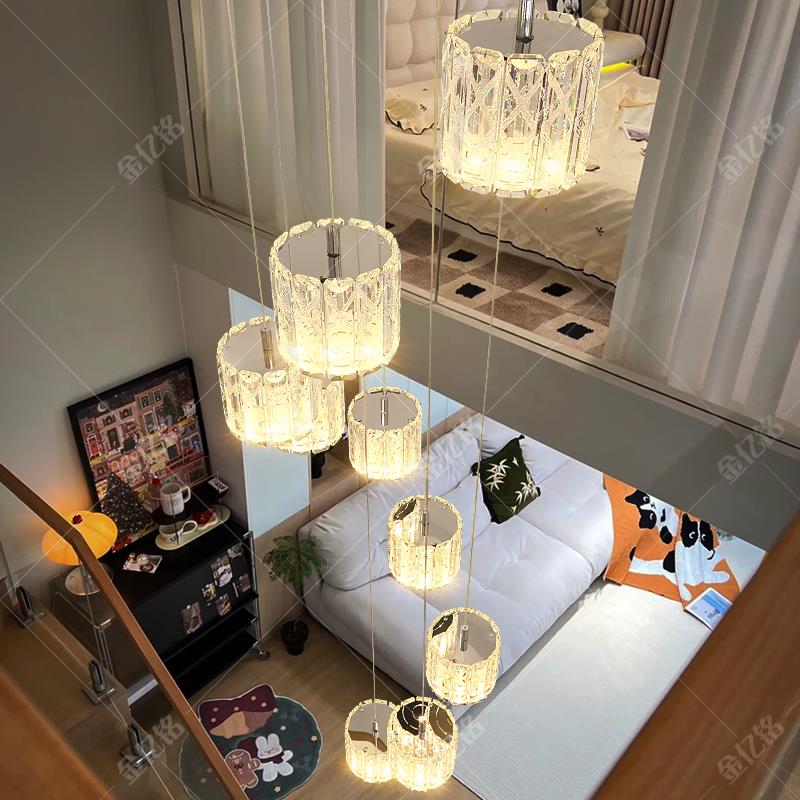 高级感别墅复式楼旋转楼梯中空长吊灯loft公寓挑高客厅灯轻奢水晶