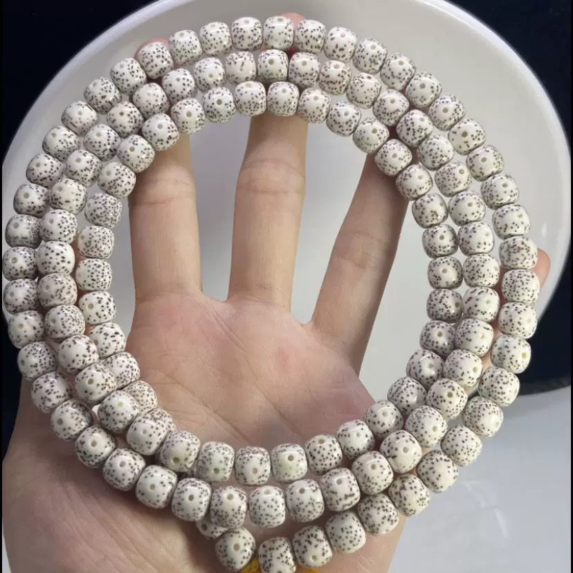 海南星月菩提原生态顺白正月桶珠高油高密108颗男女情侣手串念珠
