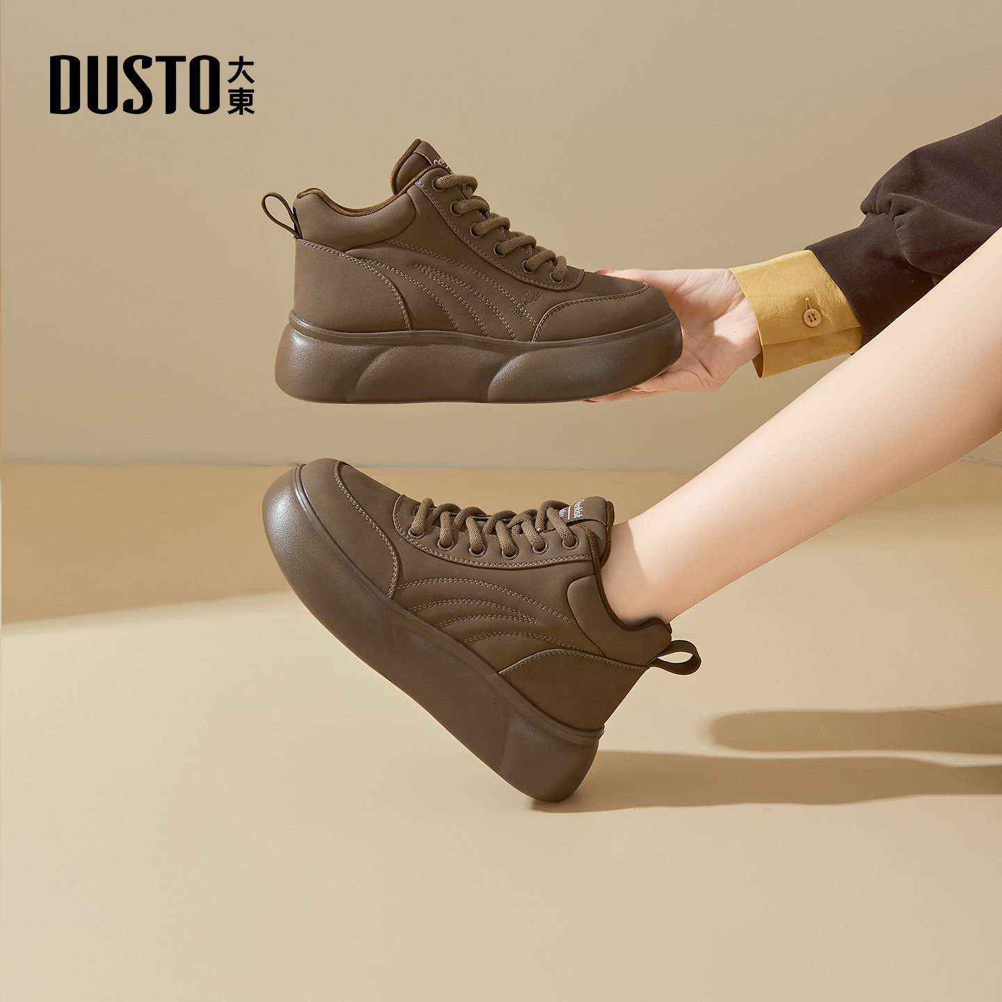 大东官方正品厚底加绒高帮运动鞋
