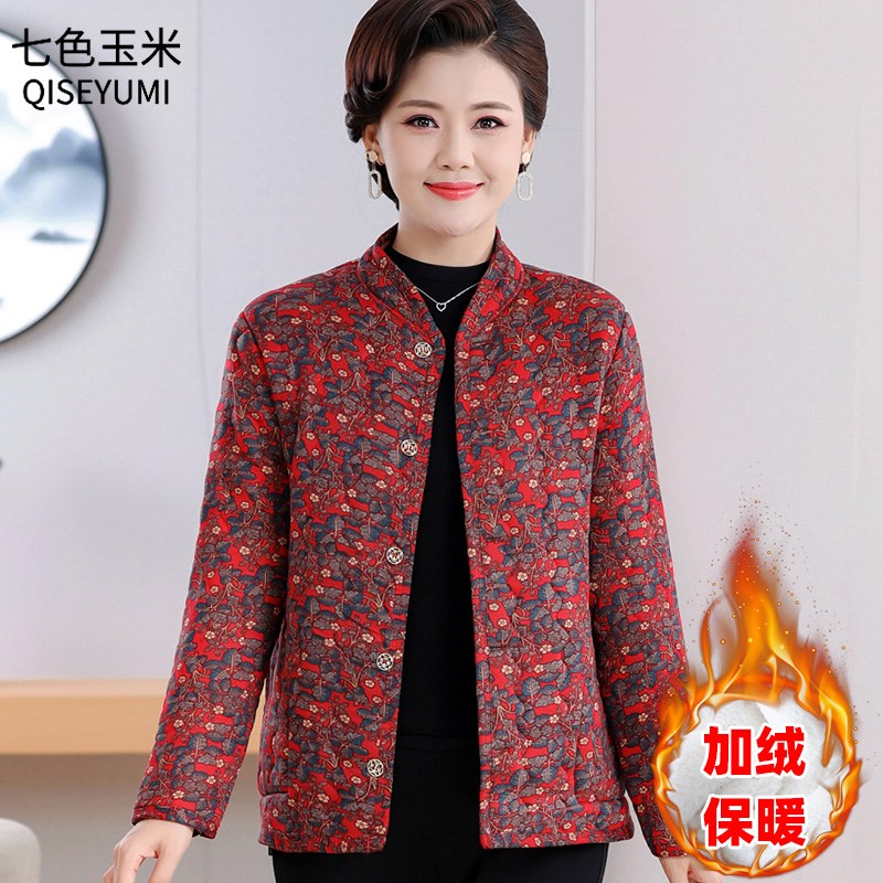 中老年女装秋装碎花外套2024新款奶奶装秋冬轻薄小棉衣妈妈装上衣