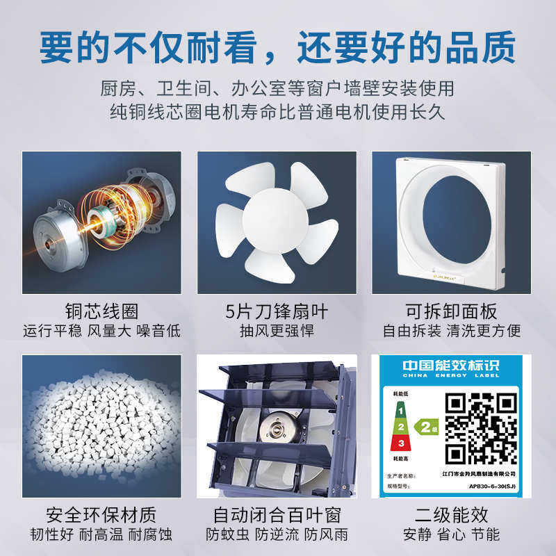 金羚排气扇6寸厨房抽风机强力油烟方形百叶换气扇家用厕所排风扇