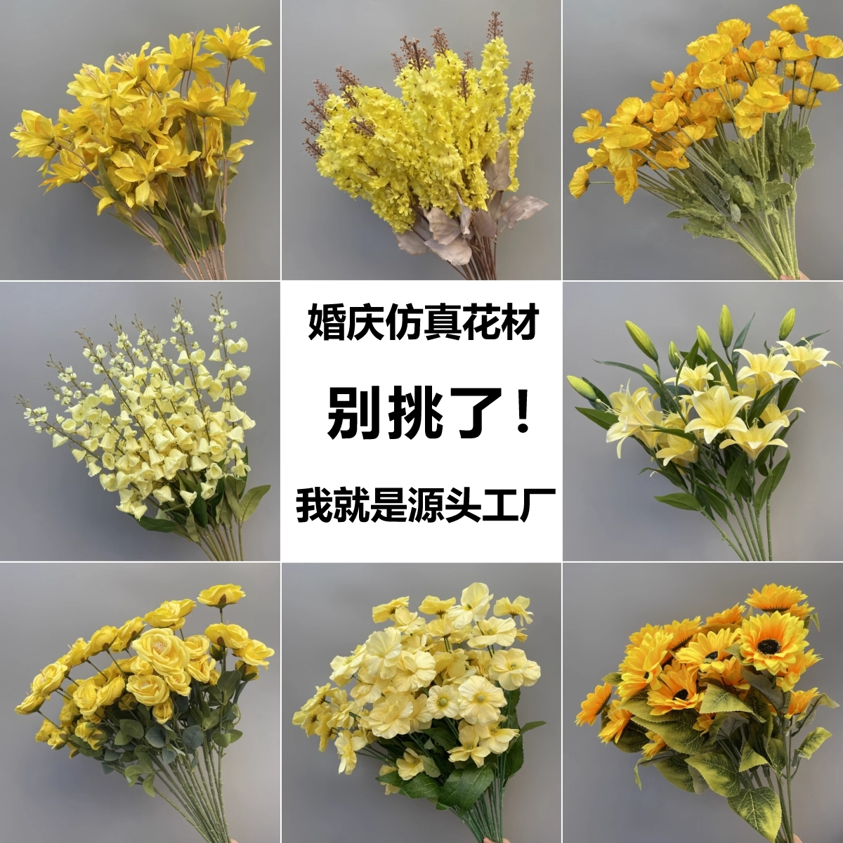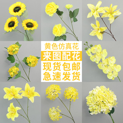 黄色仿真花婚庆道具花洋牡丹装饰布置假花向日葵假花婚礼花艺花材