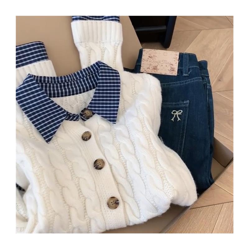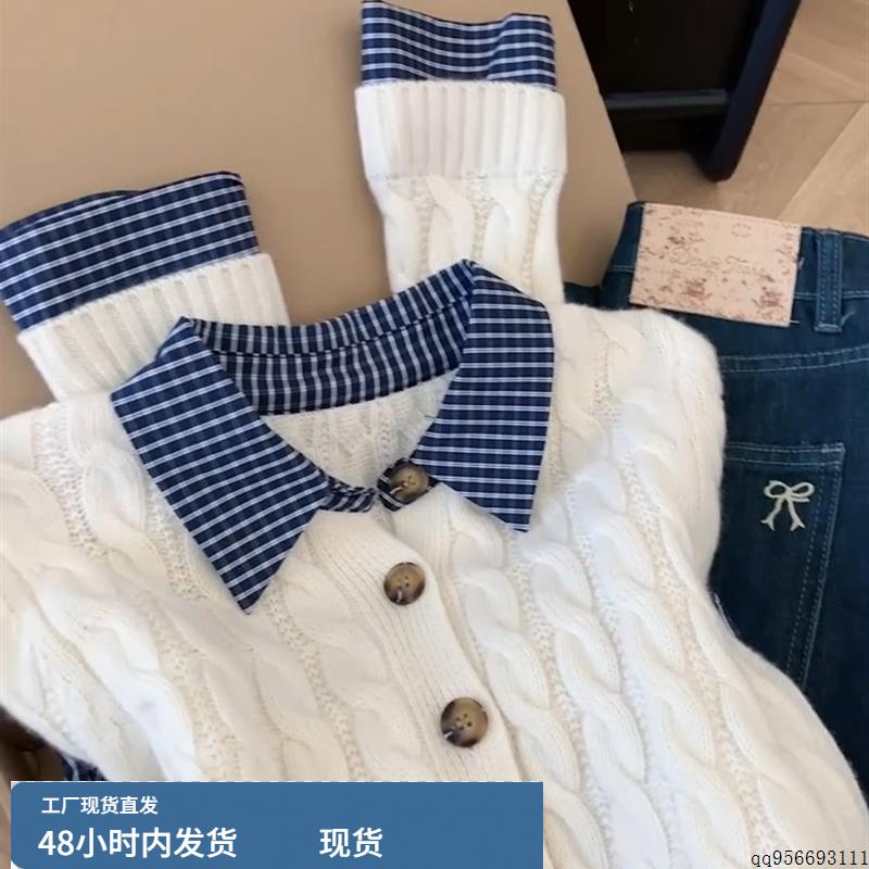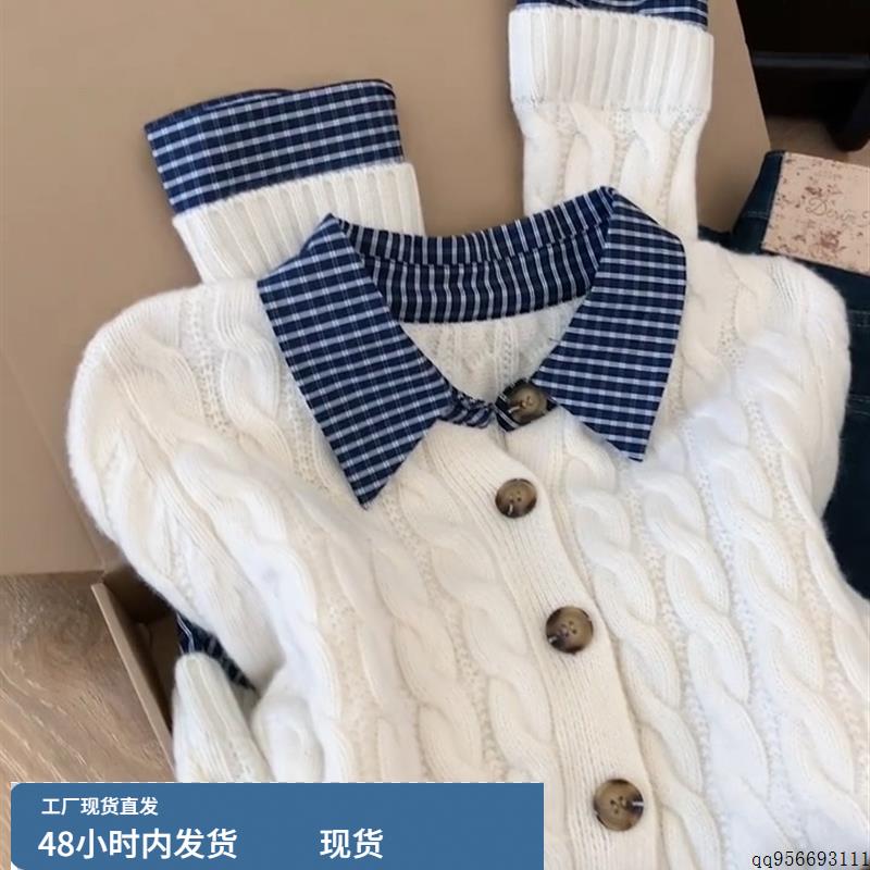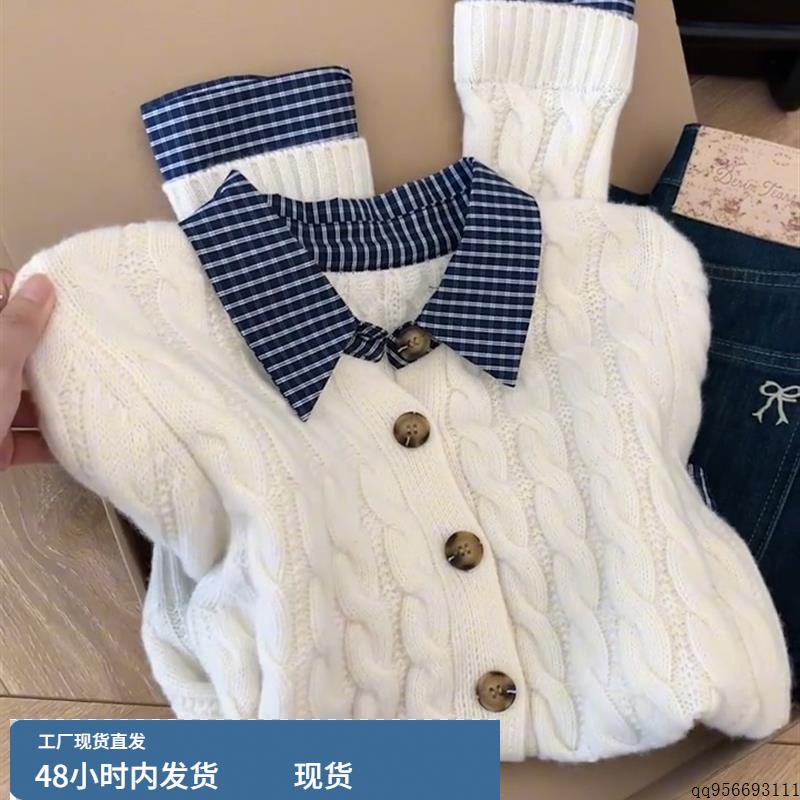 韩系高级感假两件衬衫拼接毛衣女装秋冬新款修身显瘦针织开衫外套