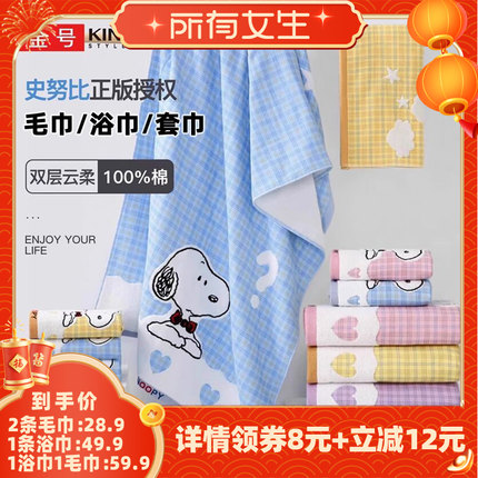 【所有女生直播间】金号史努比浴巾毛巾套巾纯棉双层柔软吸水