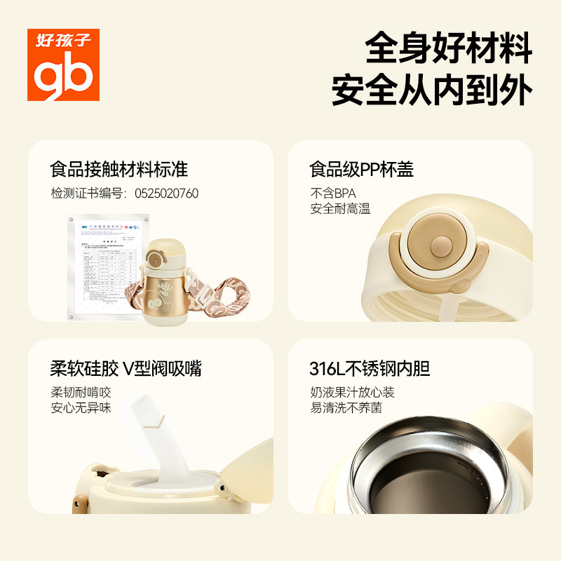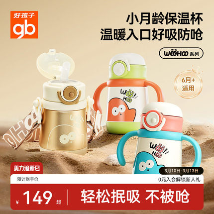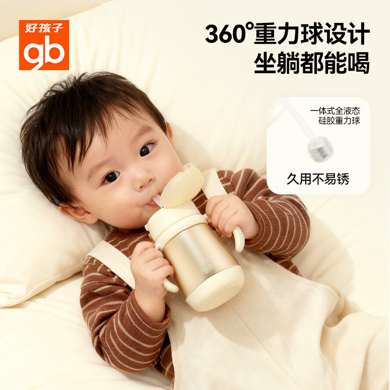 gb好孩子婴幼儿小宝保温杯小月龄儿童316L吸管学饮杯防呛抗摔水杯