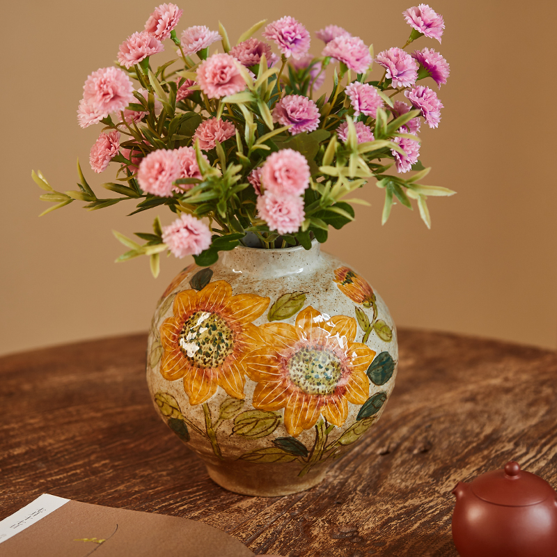 山谷 水培花瓶摆件客厅插花景德镇陶瓷花器中式复古手绘装饰陶罐