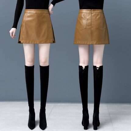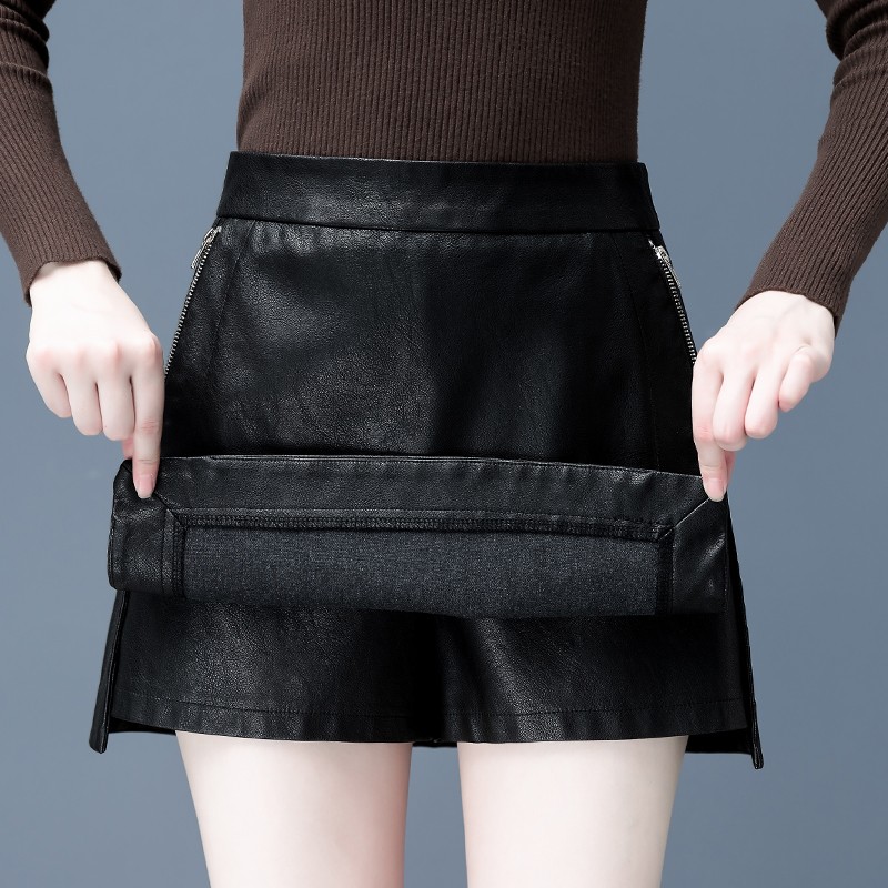 网红短裤女春秋冬2021新款拉链款PU皮裙子包臀半身裙高腰裙裤靴裤