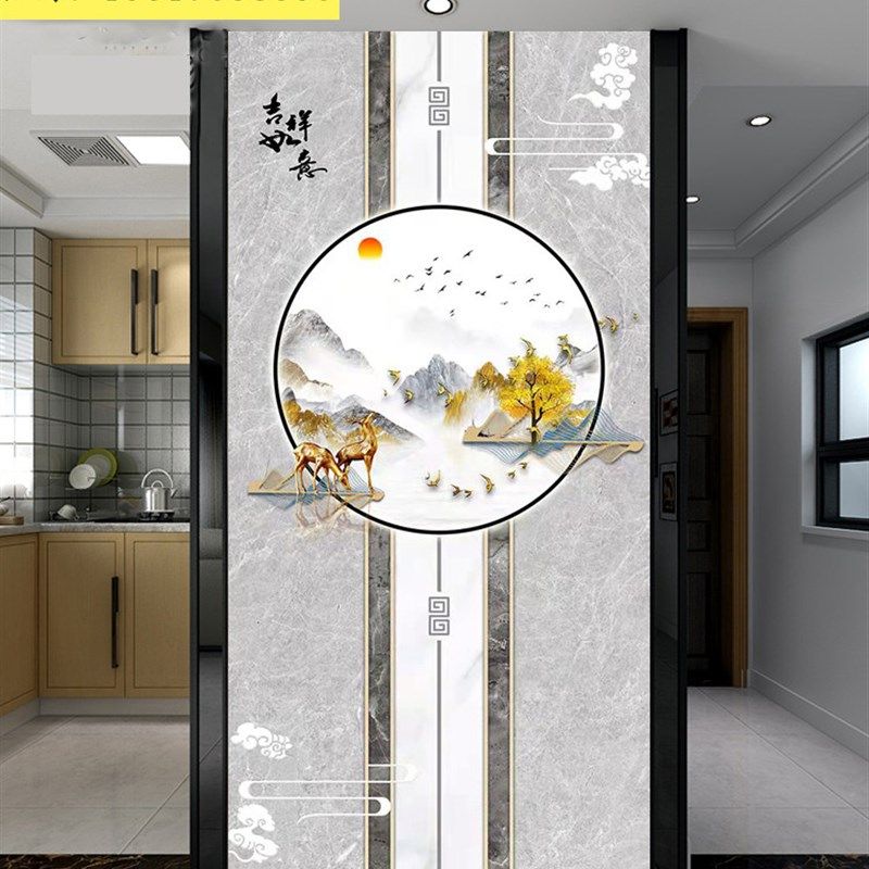 玄关岩板背景墙瓷砖微晶石大理石过道装饰壁画立体简约现代新中式