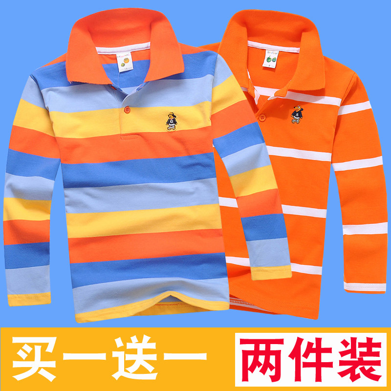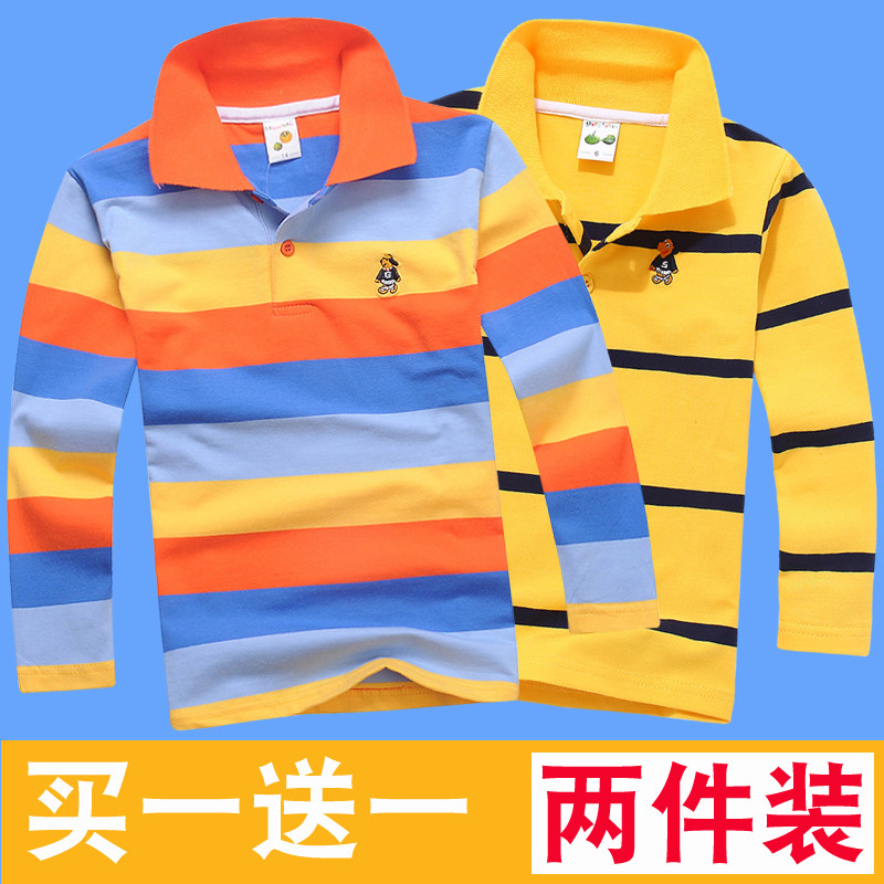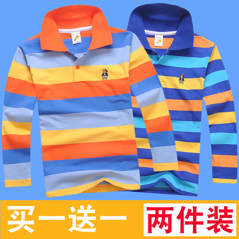 童装秋季男童长袖T恤纯棉儿童长袖t恤衫中大童条纹翻领Polo衫上衣