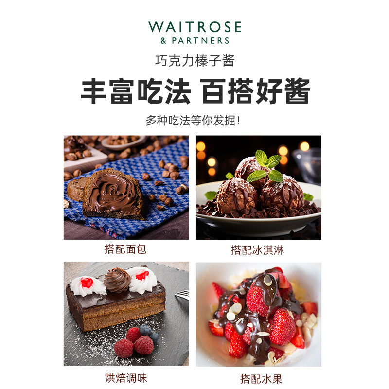 【自营】Waitrose等玫瑰进口榛子巧克力酱坚果面包可可酱烘焙400g