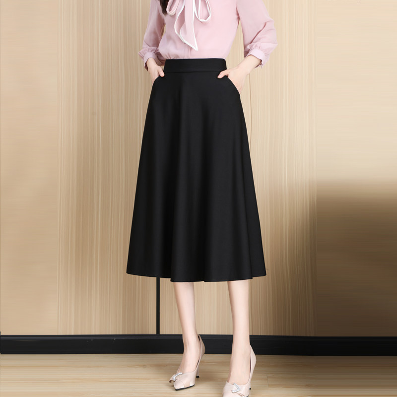 半身裙女2025新款春秋款黑色大摆裙大码高腰显瘦a字裙半身长裙子