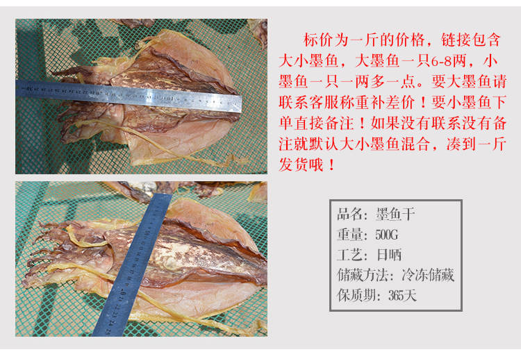 淡干大墨鱼干目鱼干 福建特产滋补纯淡晒乌贼干货墨鱼干500g