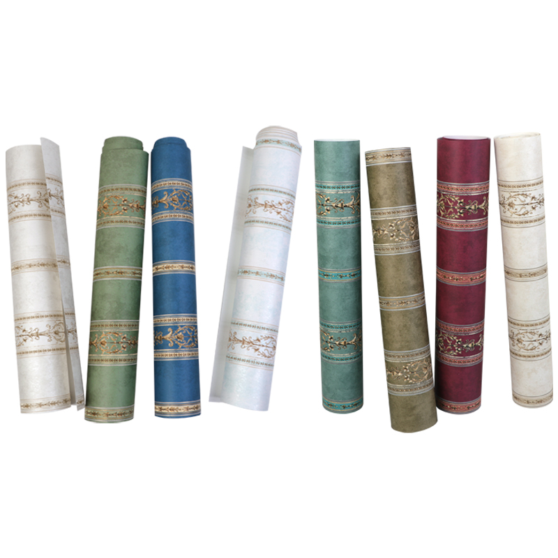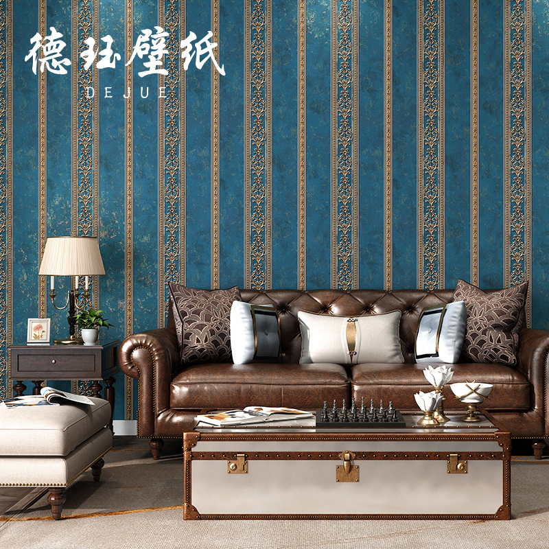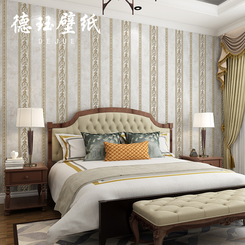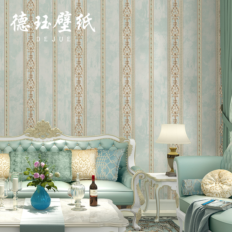 欧式3D无纺布墙纸法q式轻奢卧室奢华客厅背景条纹壁纸美式复古绿